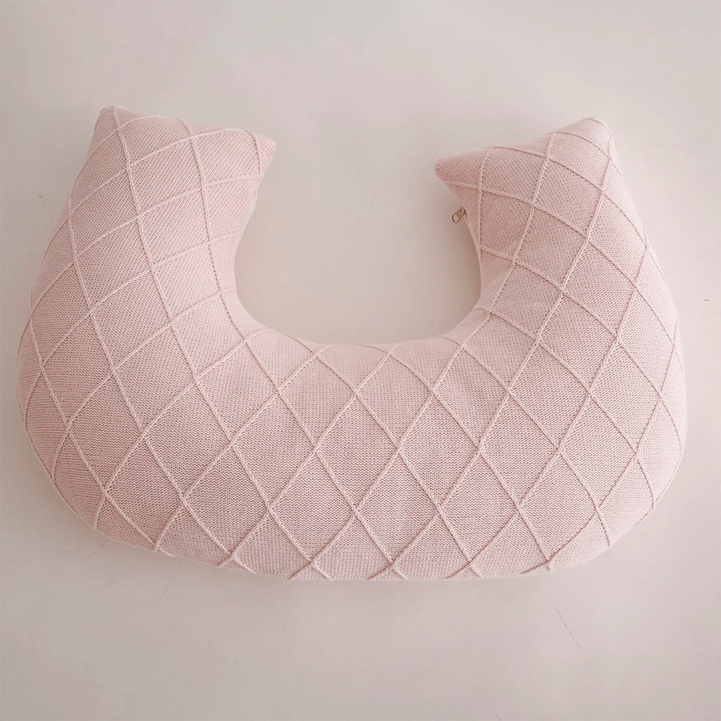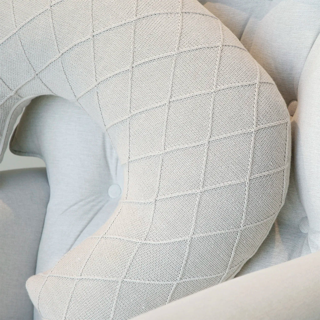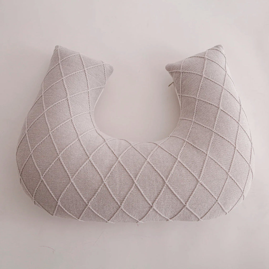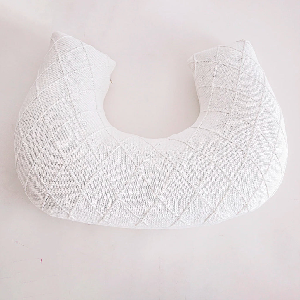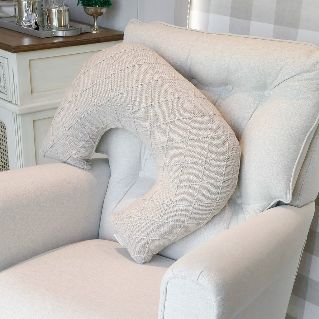 A almofada de amamentação Sonhos de Ninar faz parte dos itens indispensáveis do Enxoval do Bebê. É elaborado com tricô na trama losango em cores e com enchimento fofinho. Ela pode ser usada para ajudar a mamãe na hora da amamentação, reduz a tensão nos ombros e nos braços, e proporciona o ajuste perfeito entre o contato com a mamãe e o bebê. Seu formato em U permite que o bebê fique deitado de maneira inclinada, evitando o refluxo. É uma peça multifuncional: serve também como encosto para assistir TV ou ler, e como apoio quando a criança está começando a sentar. A peça contem zíper para facilitar lavagem.
