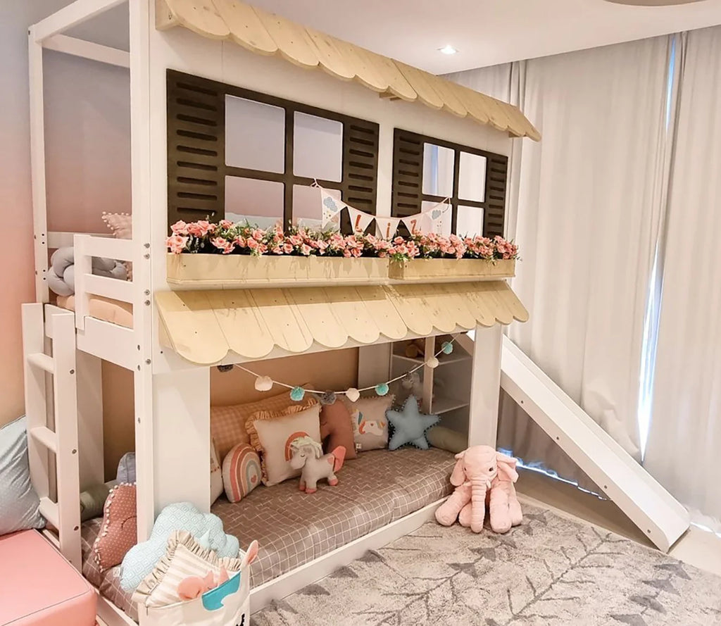 Única e exclusiva para você que sempre sonhou em ter uma inspiração de casinha no quarto do seu filho. Desenhada para estimular a autonomia e confiança dos pequenos, no método Montessori onde se desenvolvem de forma independente, com tudo ao alcance do seu olhar. As crianças quando chegam em nossas lojas vão direto brincar e se apaixonar por ela. E os papais relembram a infância, onde puderam brincar de casinha nas praças e parques espalhados na cidade. Agora seu filho pode fazer isso dentro do próprio quartinho.