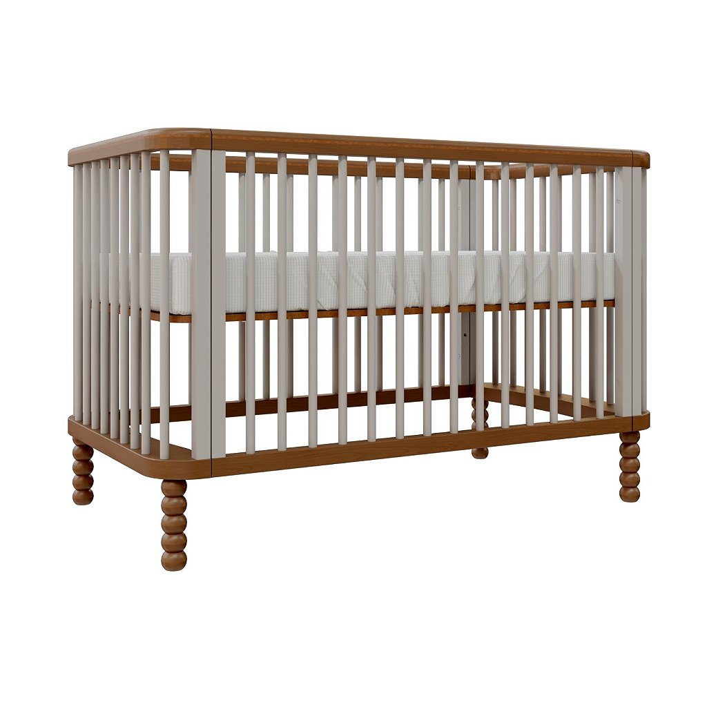 Os pés torneados em estilo bolinha conferem um toque retrô, enquanto o acabamento liso e seguro garante conforto e tranquilidade para o bebê. Além disso, o berço foi projetado para acompanhar o crescimento da criança, podendo ser transformado em mini cama quando necessário.