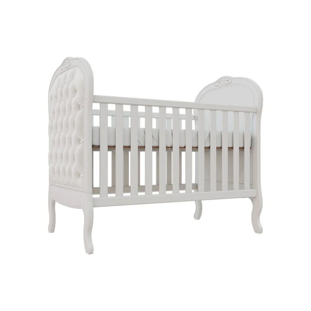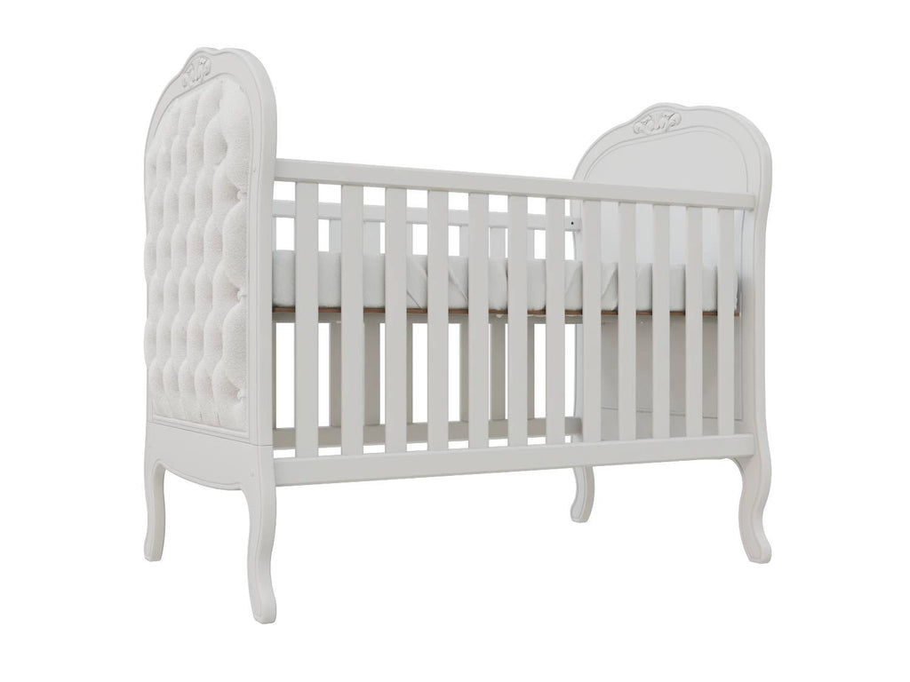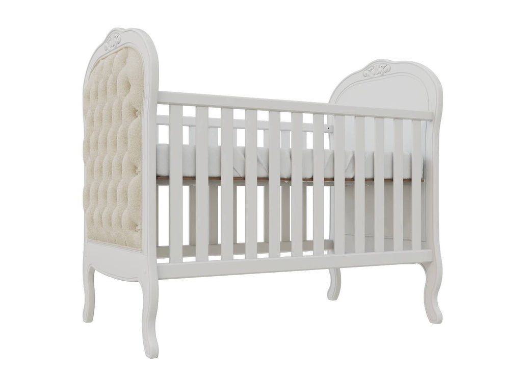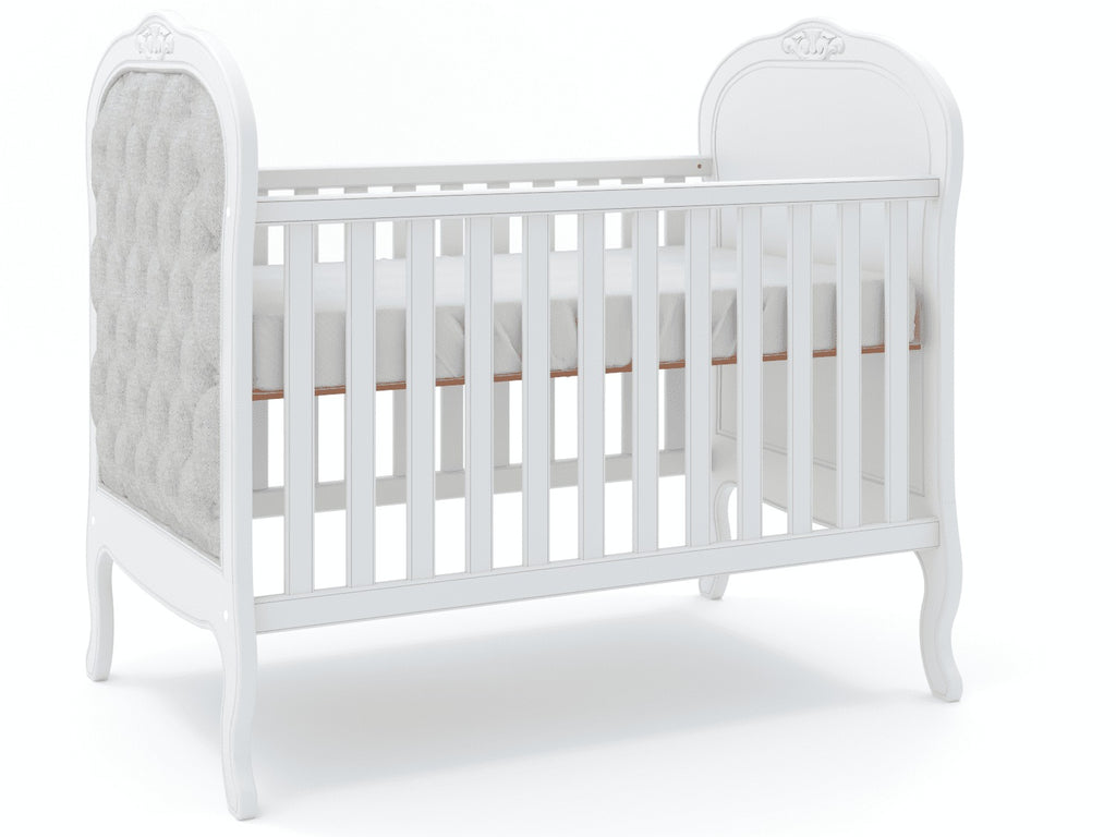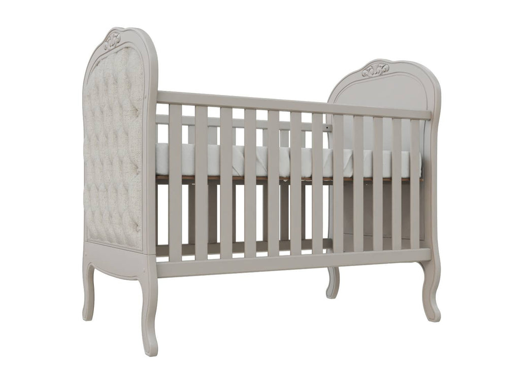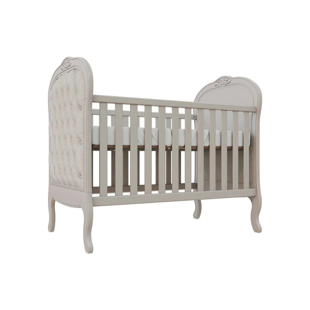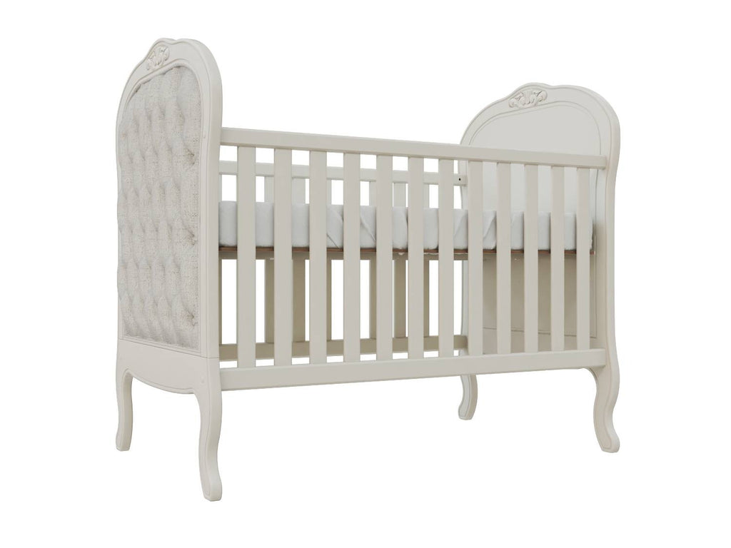 Perfeito para a decoração de um quarto de bebê sofisticado, traz charmoso detalhe de capitonê para dar aquele toque de aconchego. Sonecas confortáveis e seguras estão garantidas com as grades laterais. E o melhor de tudo é que após a fase bebê, o móvel acompanha o crescimento da criança até certo período, pois é possível transformá-lo em uma linda mini cama com o kit meia grade (vendida separadamente).
