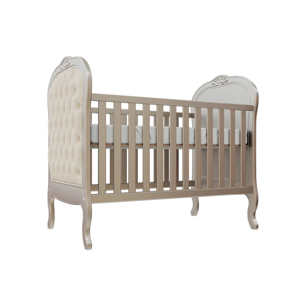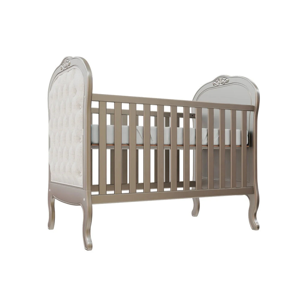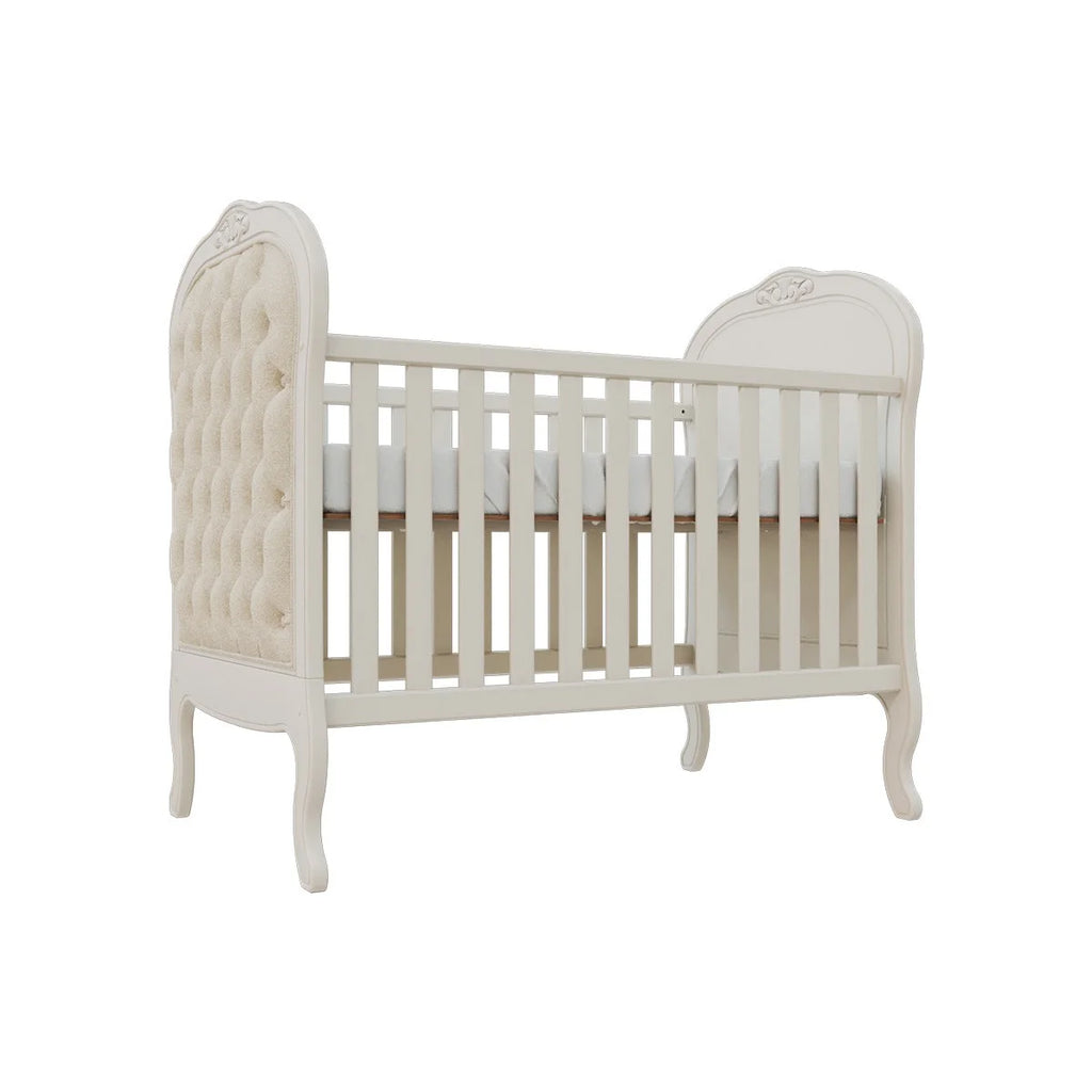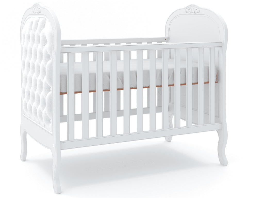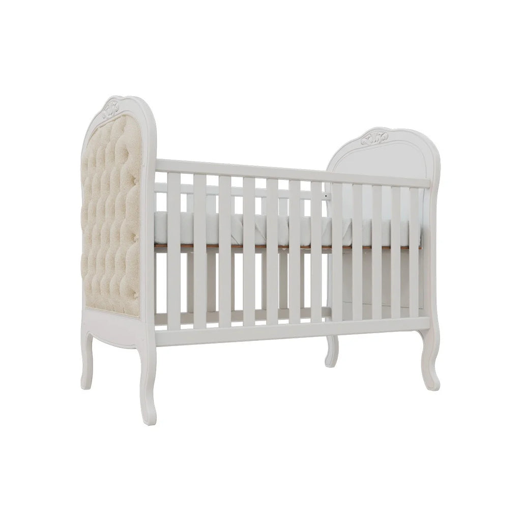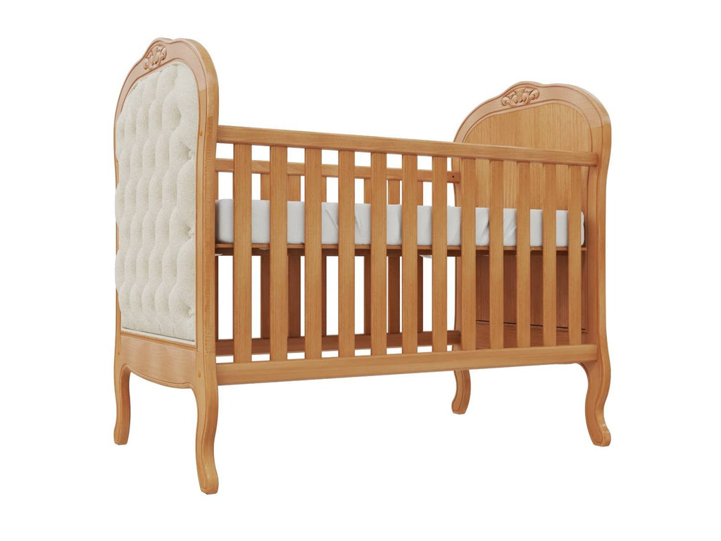 Perfeito para a decoração de um quarto de bebê sofisticado, traz charmoso detalhe de capitonê para dar aquele toque de aconchego. Sonecas confortáveis e seguras estão garantidas com as grades laterais. E o melhor de tudo é que após a fase bebê, o móvel acompanha o crescimento da criança até certo período, pois é possível transformá-lo em uma linda mini cama com o kit meia grade (vendida separadamente).