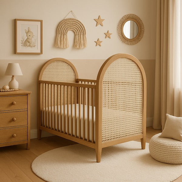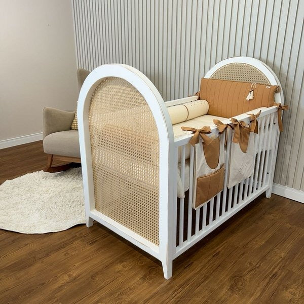 O Berço Luna Plus é a união perfeita entre design sofisticado, qualidade artesanal e funcionalidade. Suas cabeceiras em palha sextavada natural trazem um toque exclusivo e elegante, transformando o quarto do bebê em um ambiente acolhedor e cheio de personalidade.