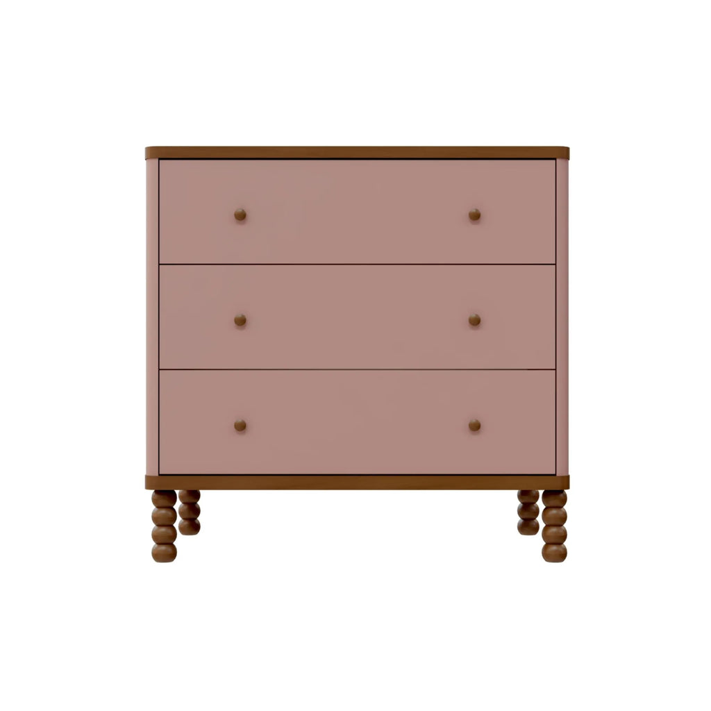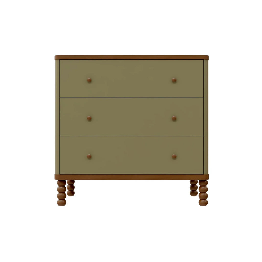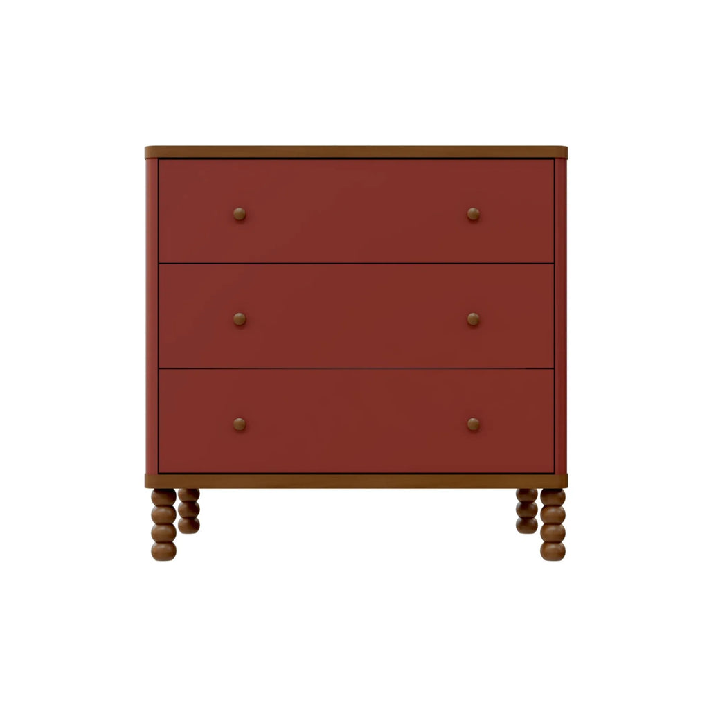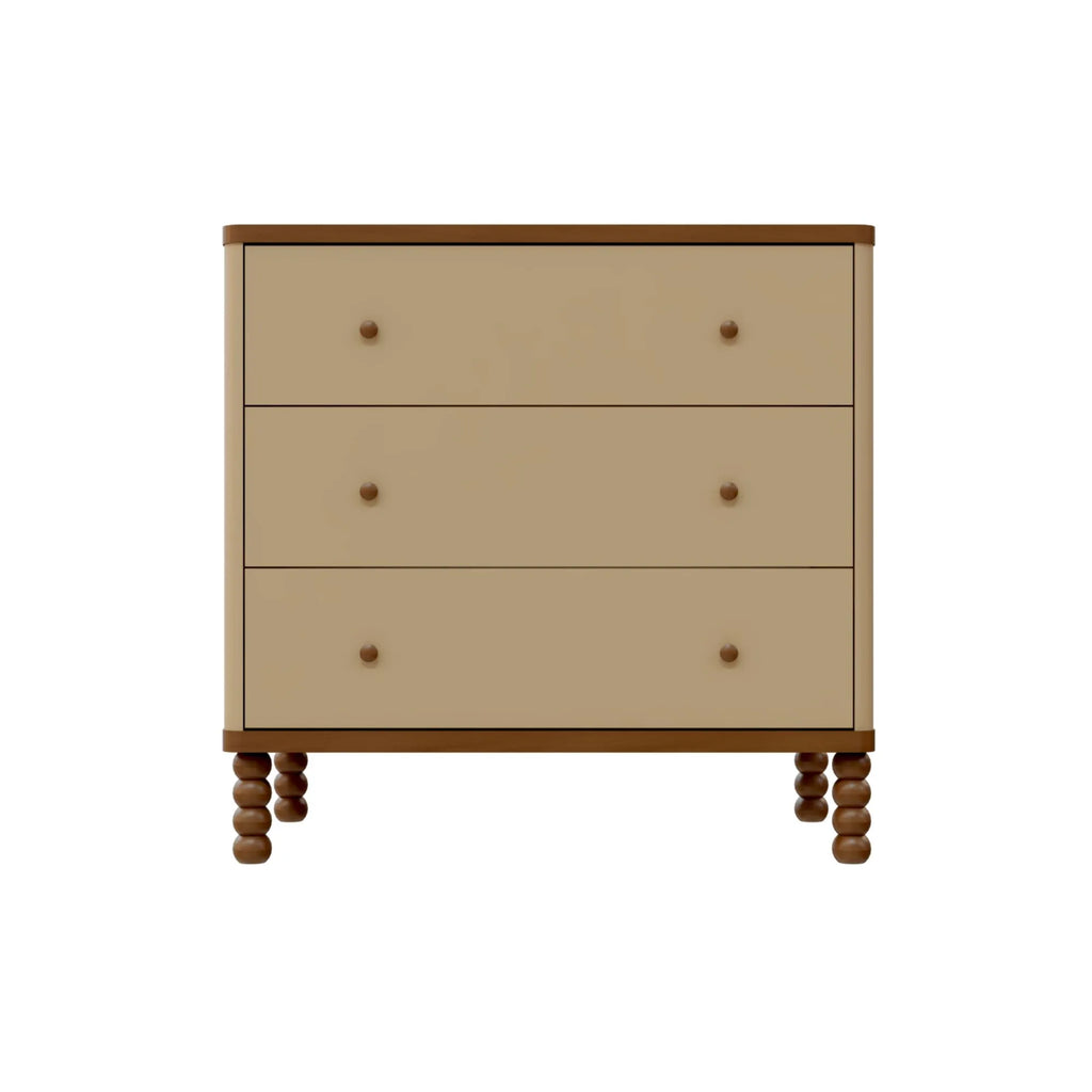 Conta com três amplas gavetas, proporcionando ótimo espaço para guardar roupas e acessórios. Os puxadores arredondados e os pés torneados em estilo bolinha conferem um toque retrô, unindo funcionalidade e beleza em uma única peça.