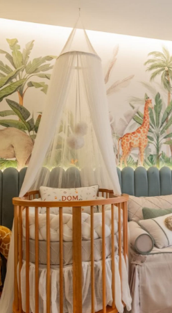 A Tenda Dossel é desenvolvida e fabricada pelo nosso próprio Ateliê, peça chave na decoração do quartinho, ela pode ser usada no berço americano, mini cama ou usada com almofadões em um cantinho no quarto deixando o ambiente mais aconchegante e dando um charme único!