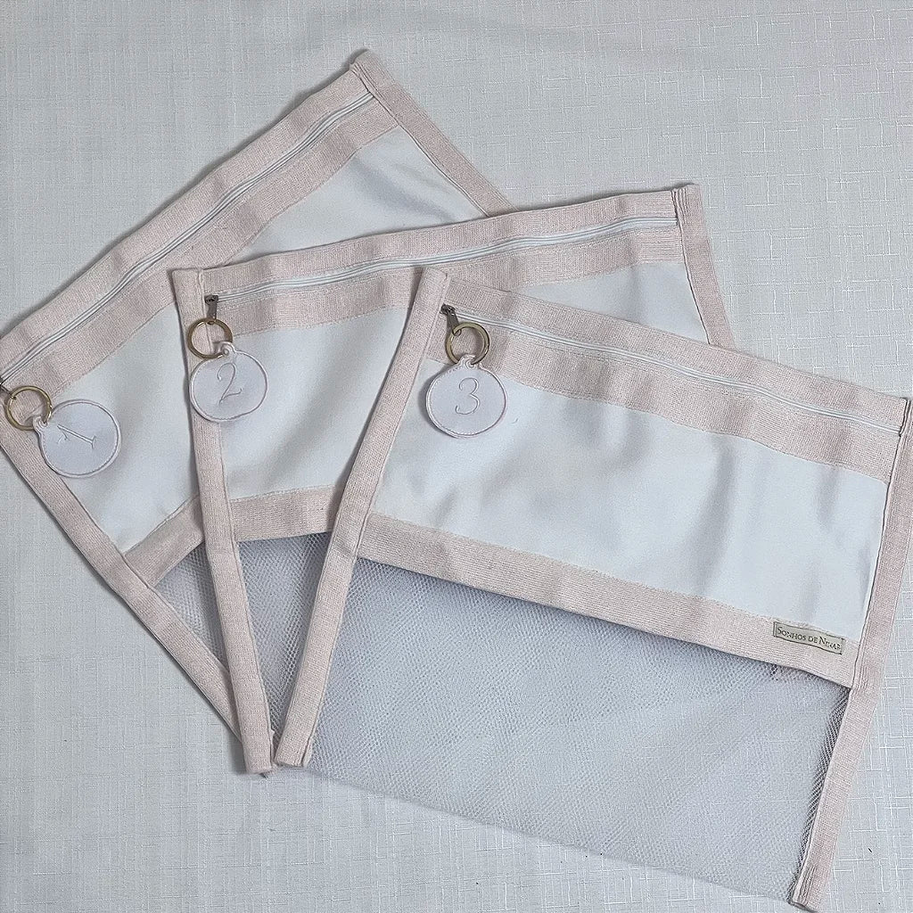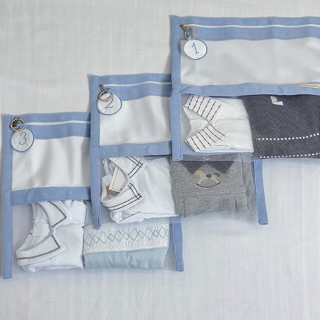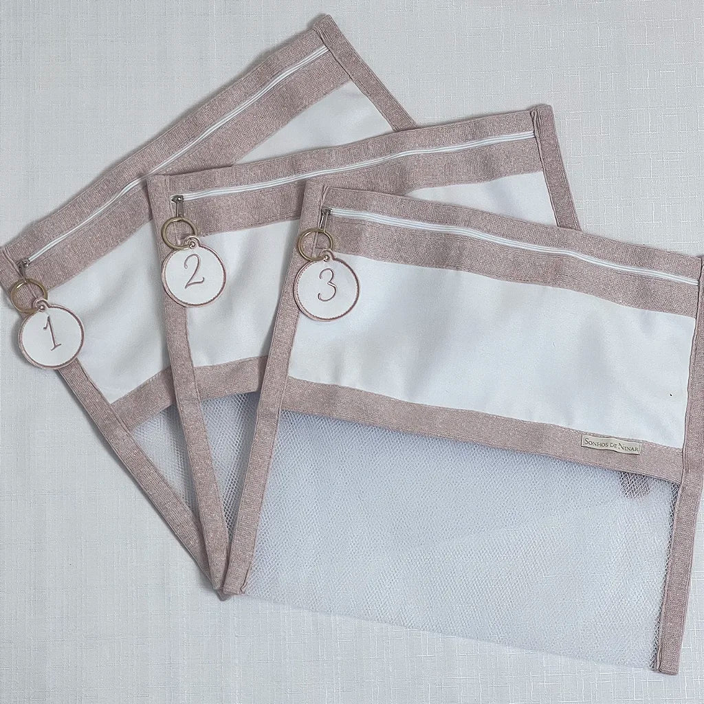 A embalagem saída de Maternidade Sonhos de Ninar contém 3 saquinhos resistente e elegantes que guarda com segurança cada peça da saída de maternidade. É um complemento encantador para a nossa saída de maternidade, projetada para tornar o momento ainda mais memorável.