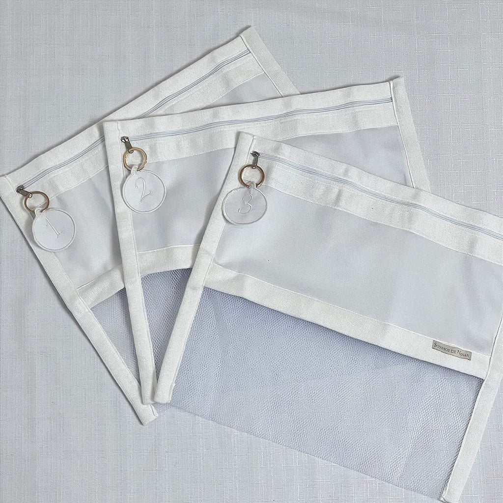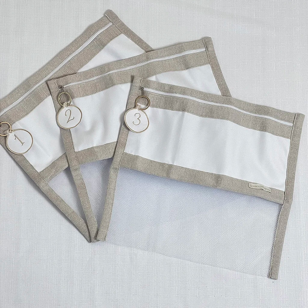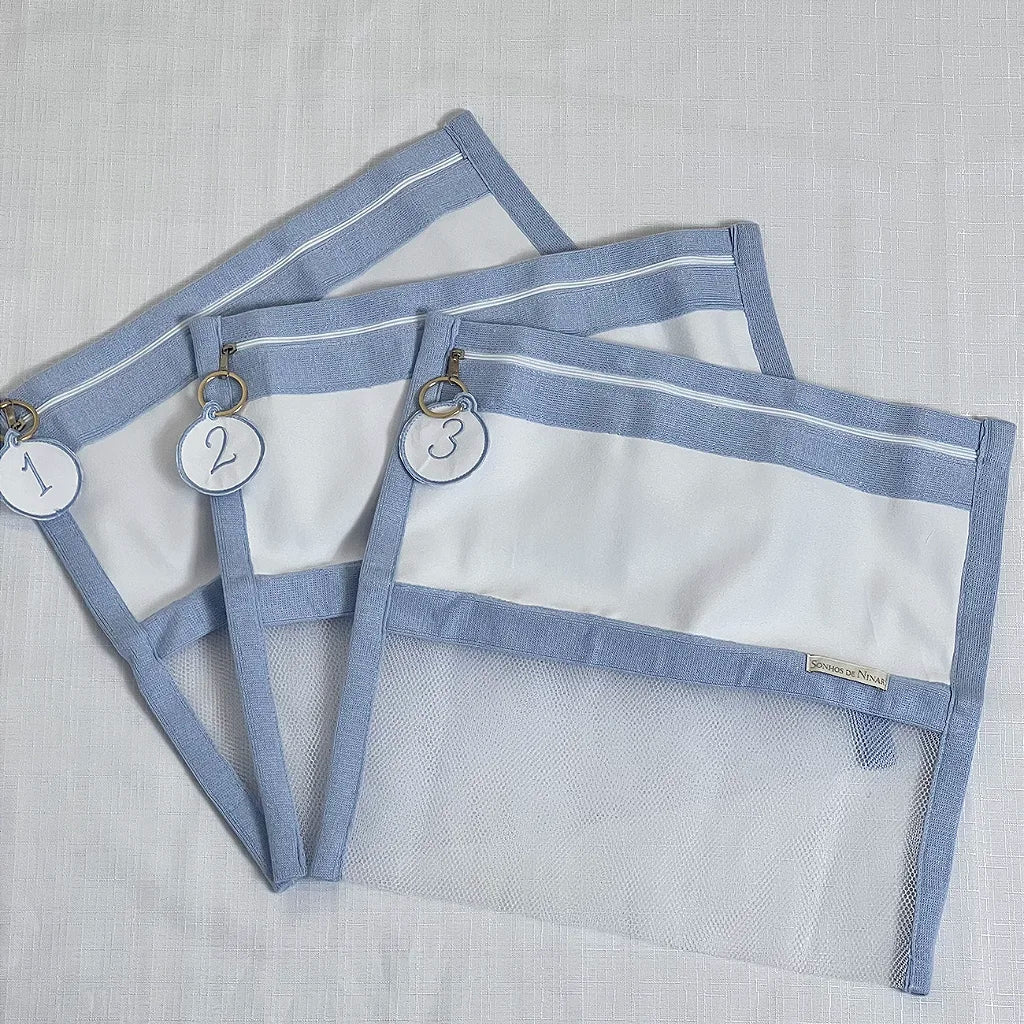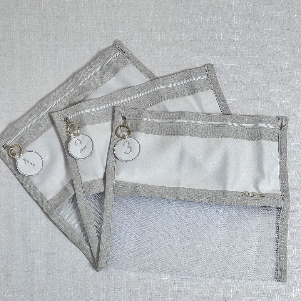 A embalagem saída de Maternidade Sonhos de Ninar contém 3 saquinhos resistente e elegantes que guarda com segurança cada peça da saída de maternidade. É um complemento encantador para a nossa saída de maternidade, projetada para tornar o momento ainda mais memorável.