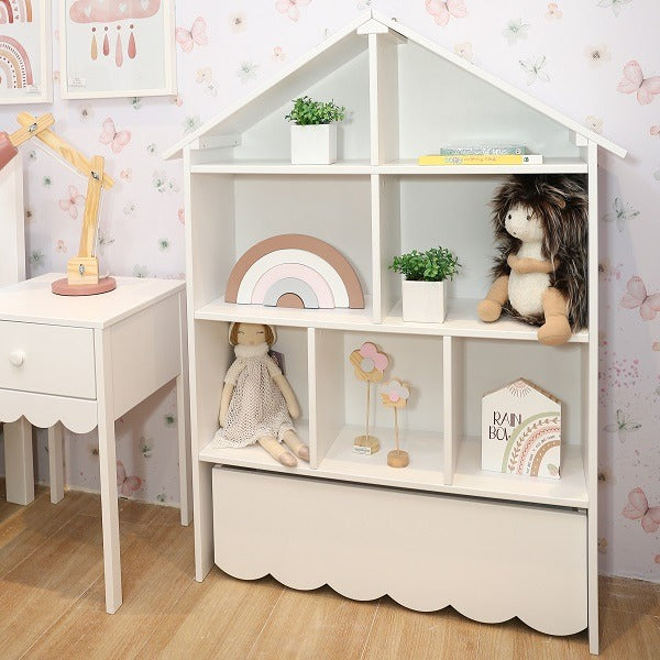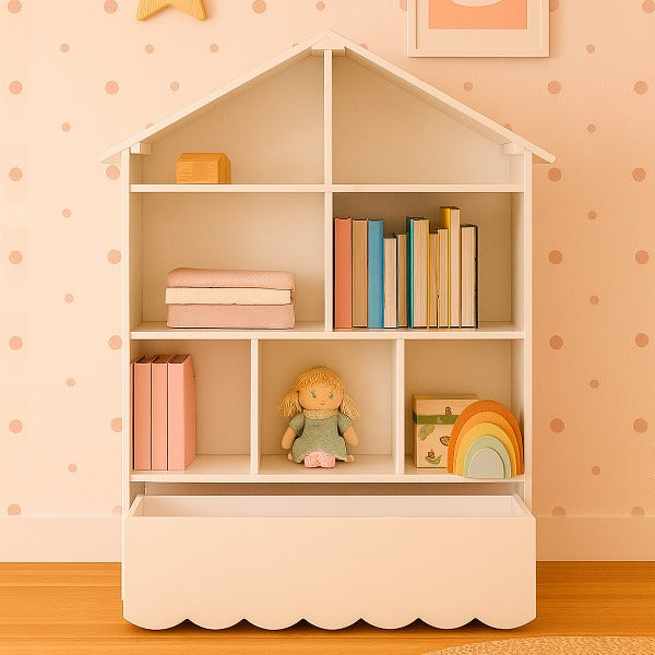A Estante Infantil Olivia é a escolha certa para unir organização, delicadeza e encanto no quarto das crianças. Com design em formato de casinha e detalhes de babados, ela transforma o ambiente em um espaço lúdico e cheio de charme.