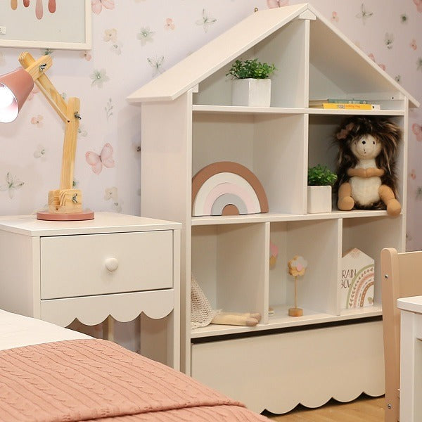 Mais do que um móvel funcional, a Estante Olivia é um item decorativo que traz um toque romântico e mágico para o espaço infantil.