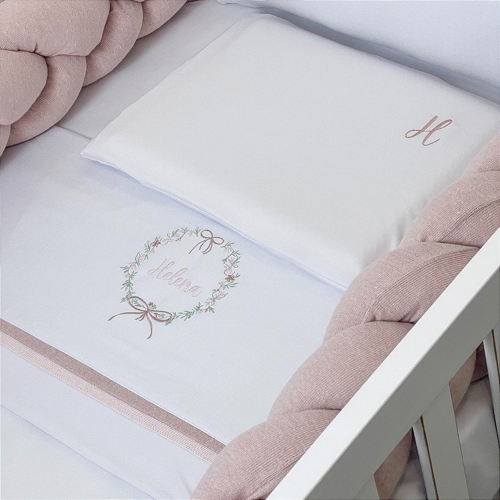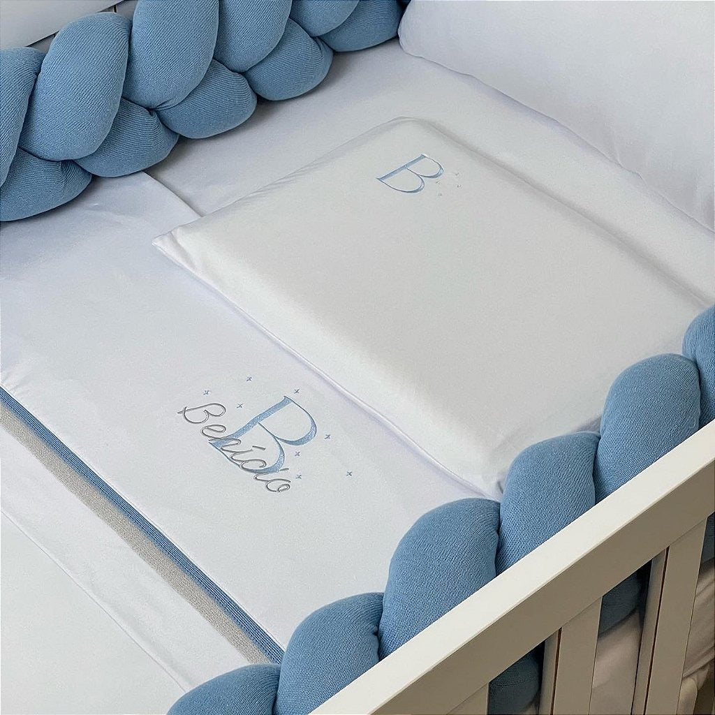 O jogo de lençol 3 peças para Berço Sonhos de Ninar Confeccionada no tecido toque de seda, com fino acabamento em tricot en cores. (Veja o mostruário das cores e tramas do tricot disponiveis na descrição completa do produto)