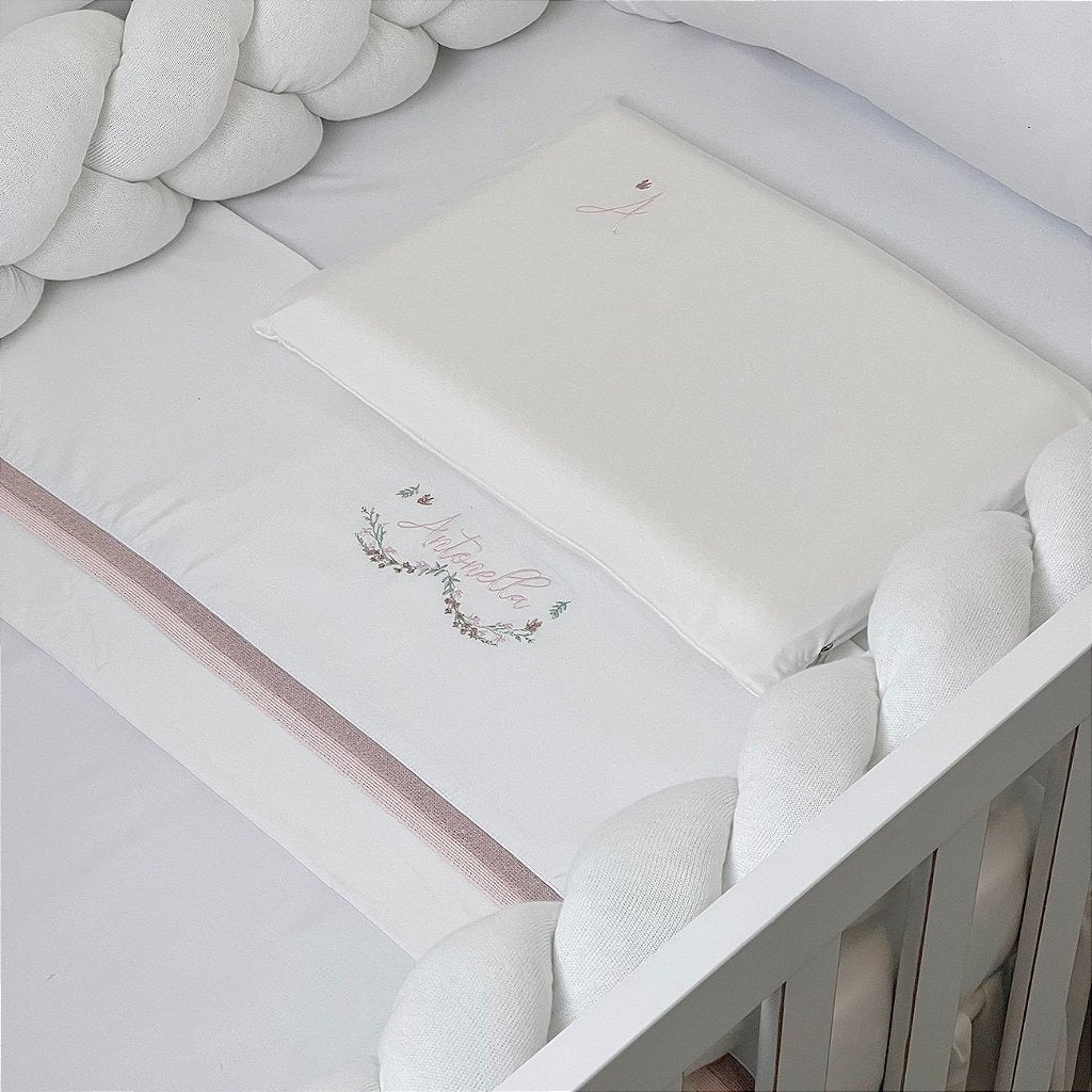 O jogo de lençol 3 peças para Berço Sonhos de Ninar Confeccionada no tecido toque de seda branco, com fino acabamento em tricot em cores. Combina o encanto do acabamento ao toque suave e macio do tecido natural, o resultado é um berço de arrumação clássica que complementa a decoração proporcionando conforto e suavidade para os pequenos.