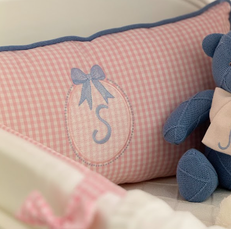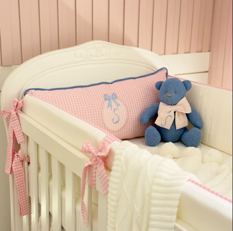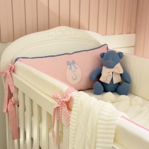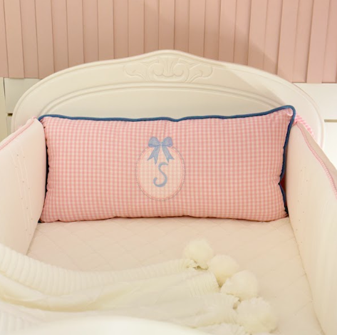 1 Almofada Cabeceira, personalizada com a inicial do bebê, tornando cada peça única e especial.