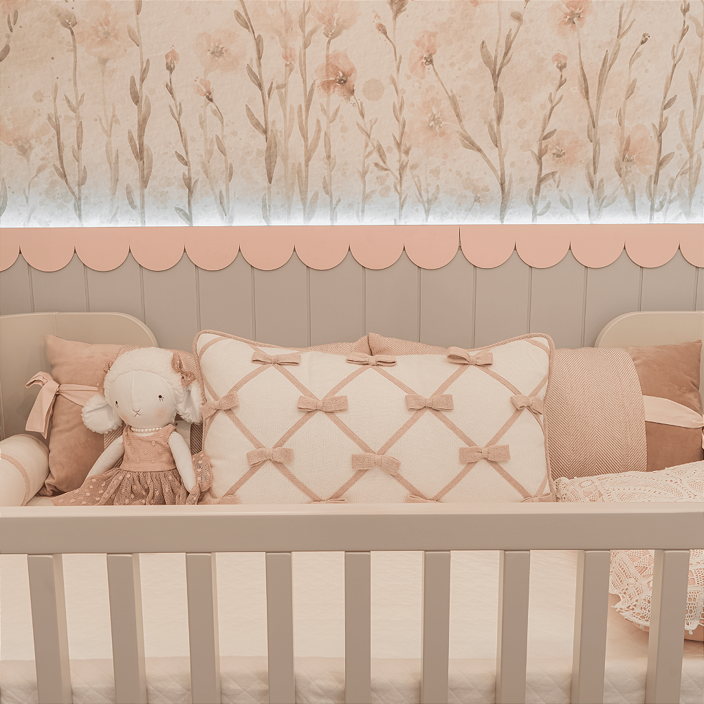 Com design atemporal e detalhes cuidadosamente elaborados, o kit agrega beleza, praticidade e durabilidade, além de harmonizar perfeitamente com a decoração do quarto. Cada peça foi pensada para oferecer aconchego e transmitir amor em cada detalhe.