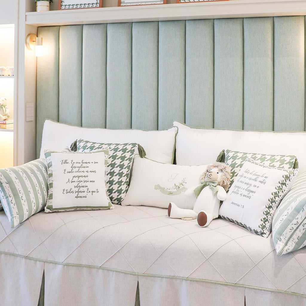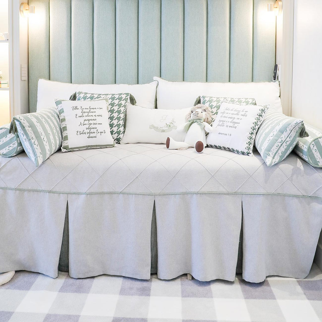 Crie um ambiente elegante e acolhedor no quarto do seu bebê com o Kit de Cama José da Sonhos de Ninar. Composto por 6 peças cuidadosamente feitas em percal de alta qualidade, nos tons sofisticados de verde folha, branco e verde, esse kit traz conforto e estilo para o espaço do seu pequeno. A colcha com caída, as almofadas e os quebra-rins completam o visual com um charme sutil, ideal para um ambiente de aconchego e sofisticação.