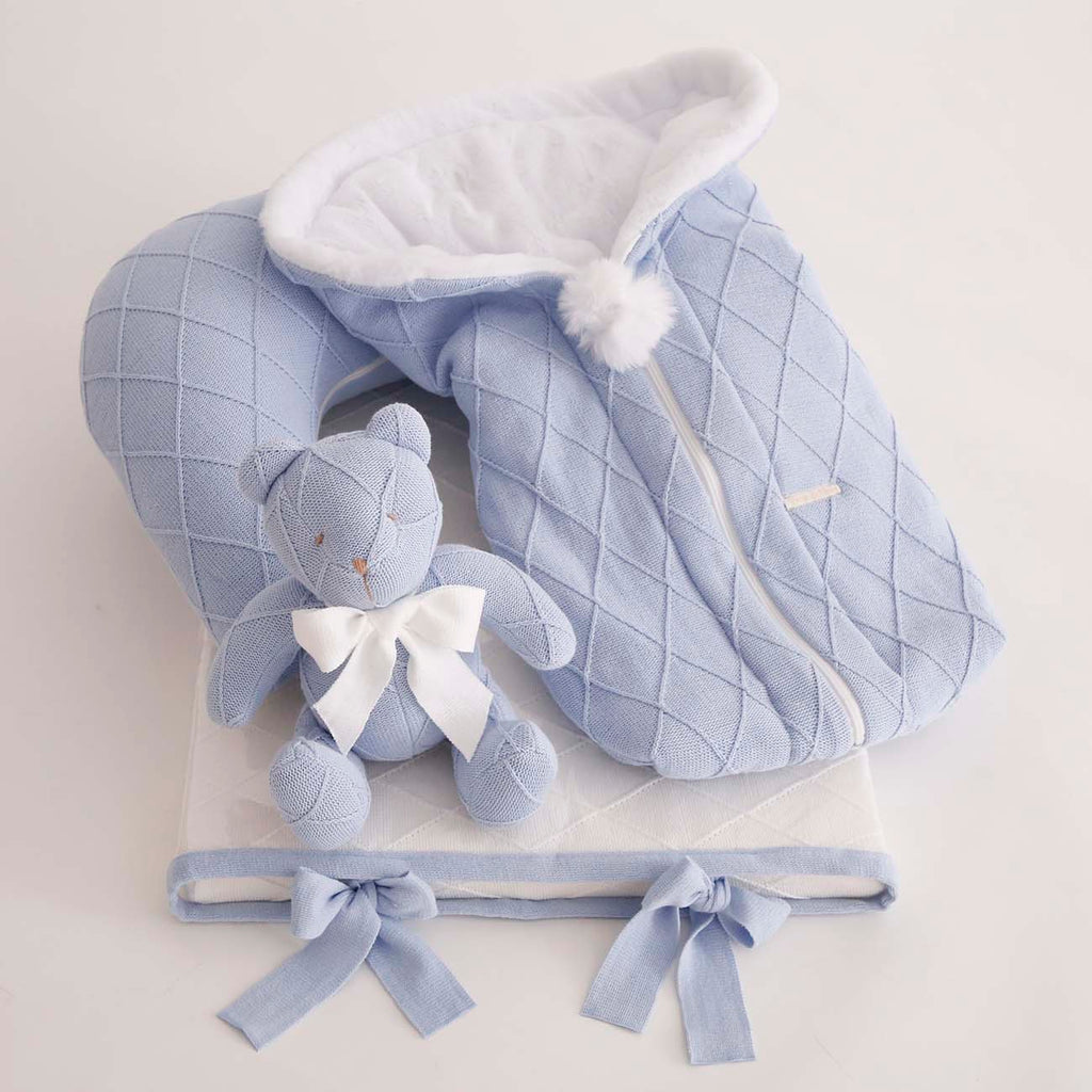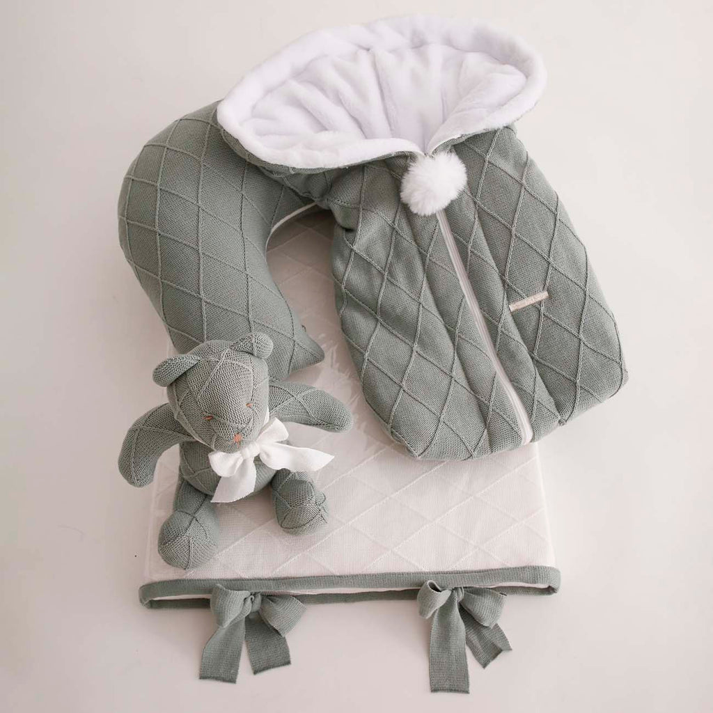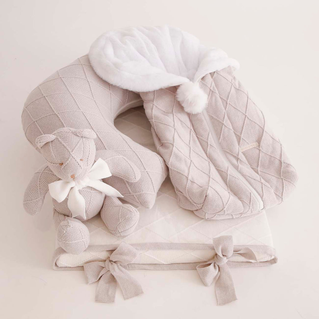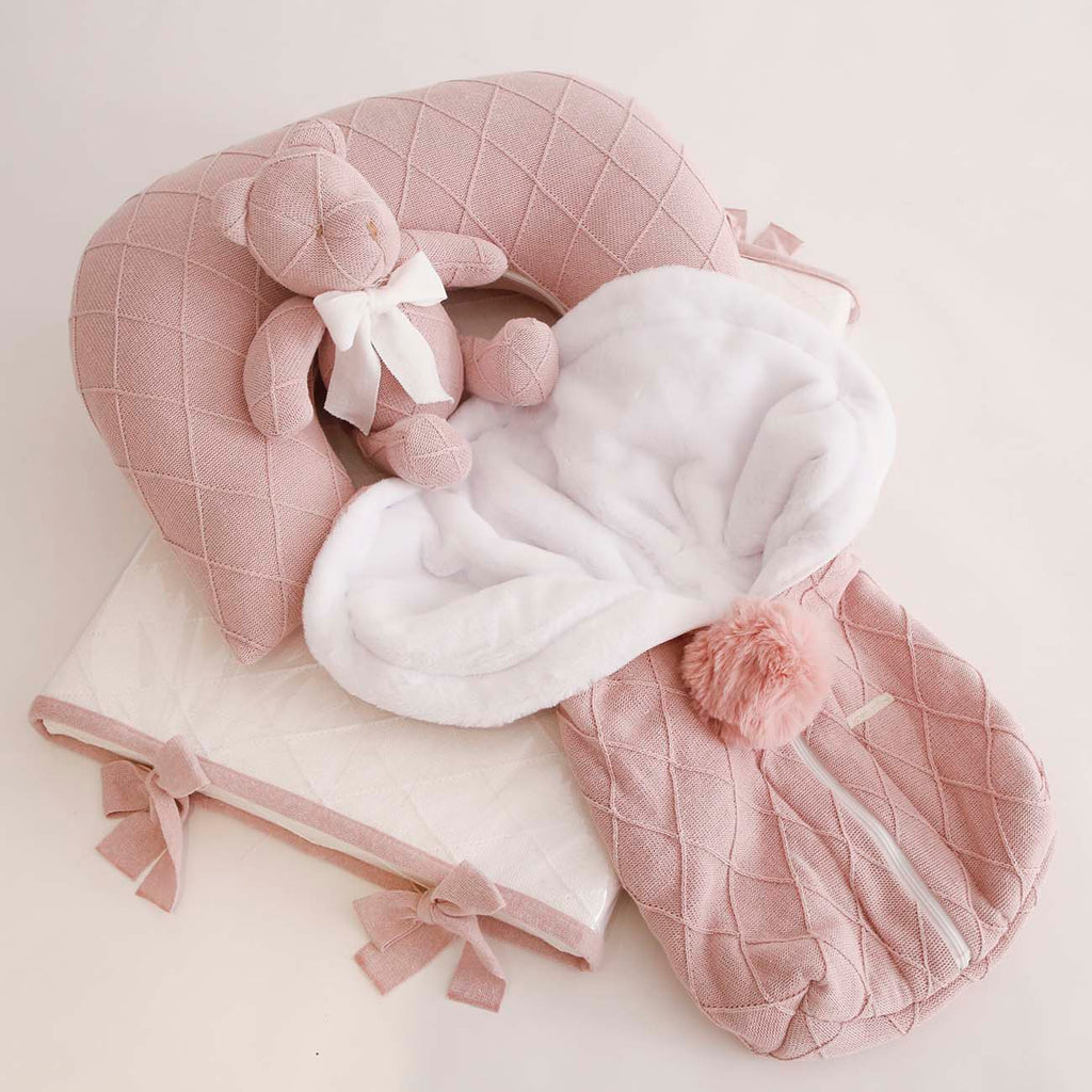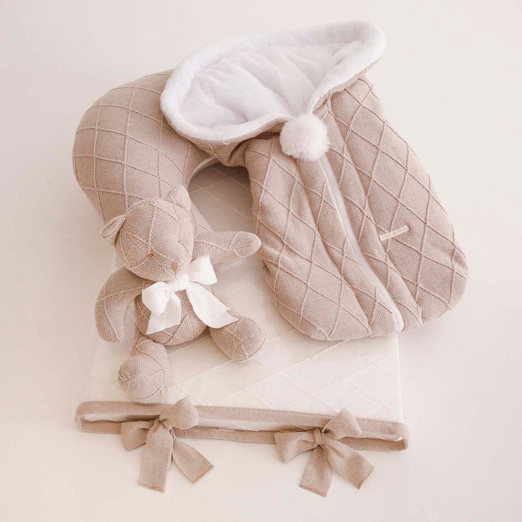 O Kit Essencial Sonhos de Ninar é a escolha perfeita para acolher seu bebê com conforto e praticidade. Este kit inclui quatro itens indispensáveis: um saquinho para dormir, uma almofada de amamentação, um trocador e um urso Poly, todos elaborados com o melhor tricô na trama losango, garantindo durabilidade e um toque suave.