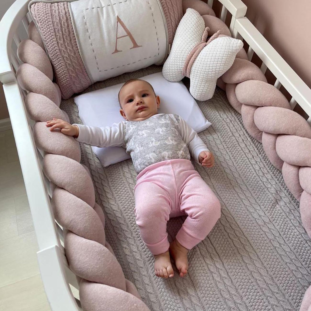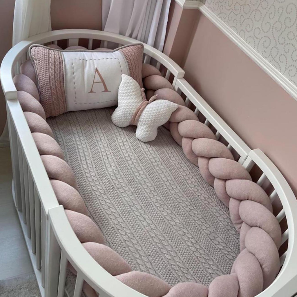 - 1 Trança de tricô em 3 cores, que protege o bebê das grades do berço, ao mesmo tempo que permite maior circulação de ar e visibilidade para os pais.