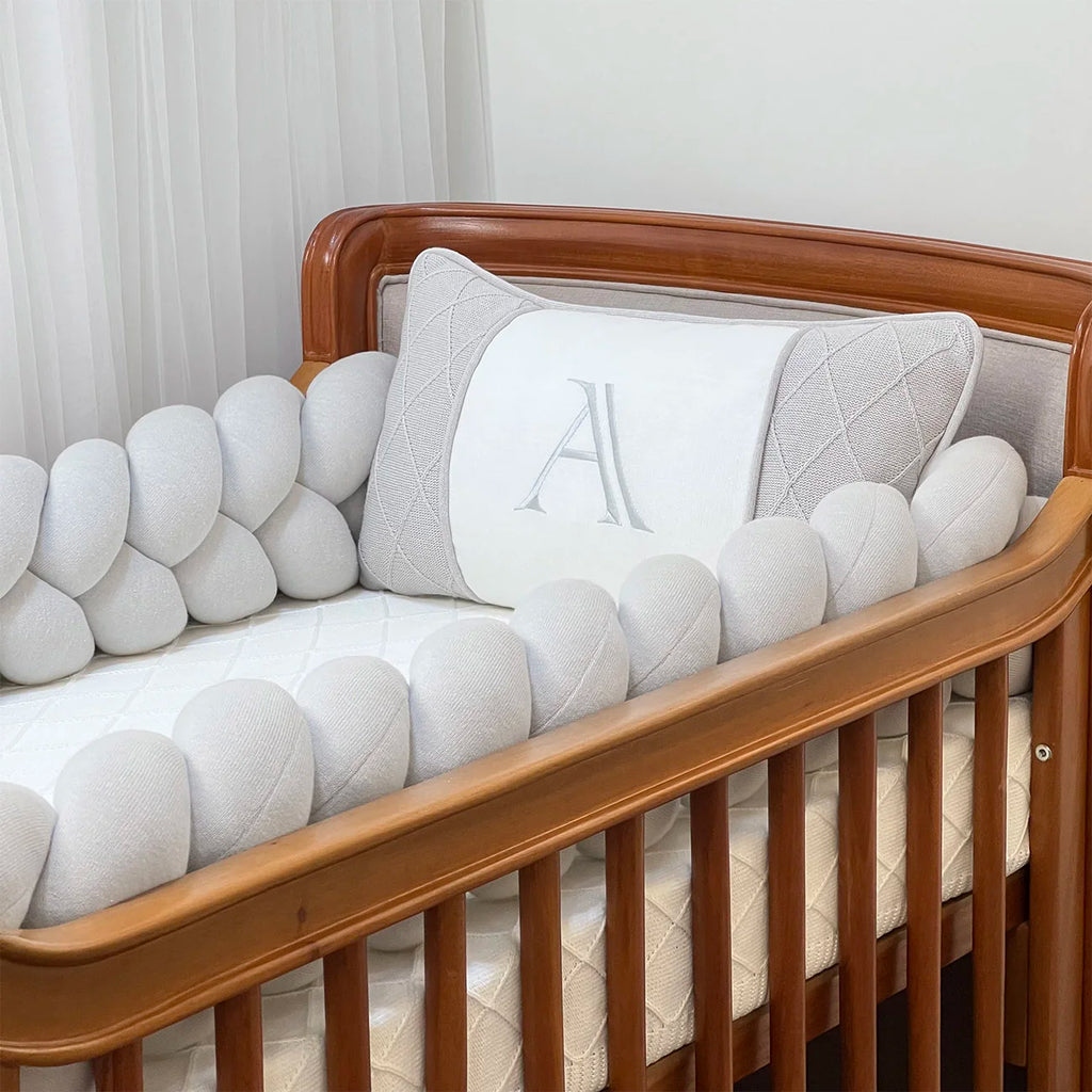 - 1 Trança protetora GG de 3,30m de tricô na cor cinza claro, ideal para proteger o bebê do contato com as grades, além de permitir maior circulação de ar e melhor visibilidade para os pais.