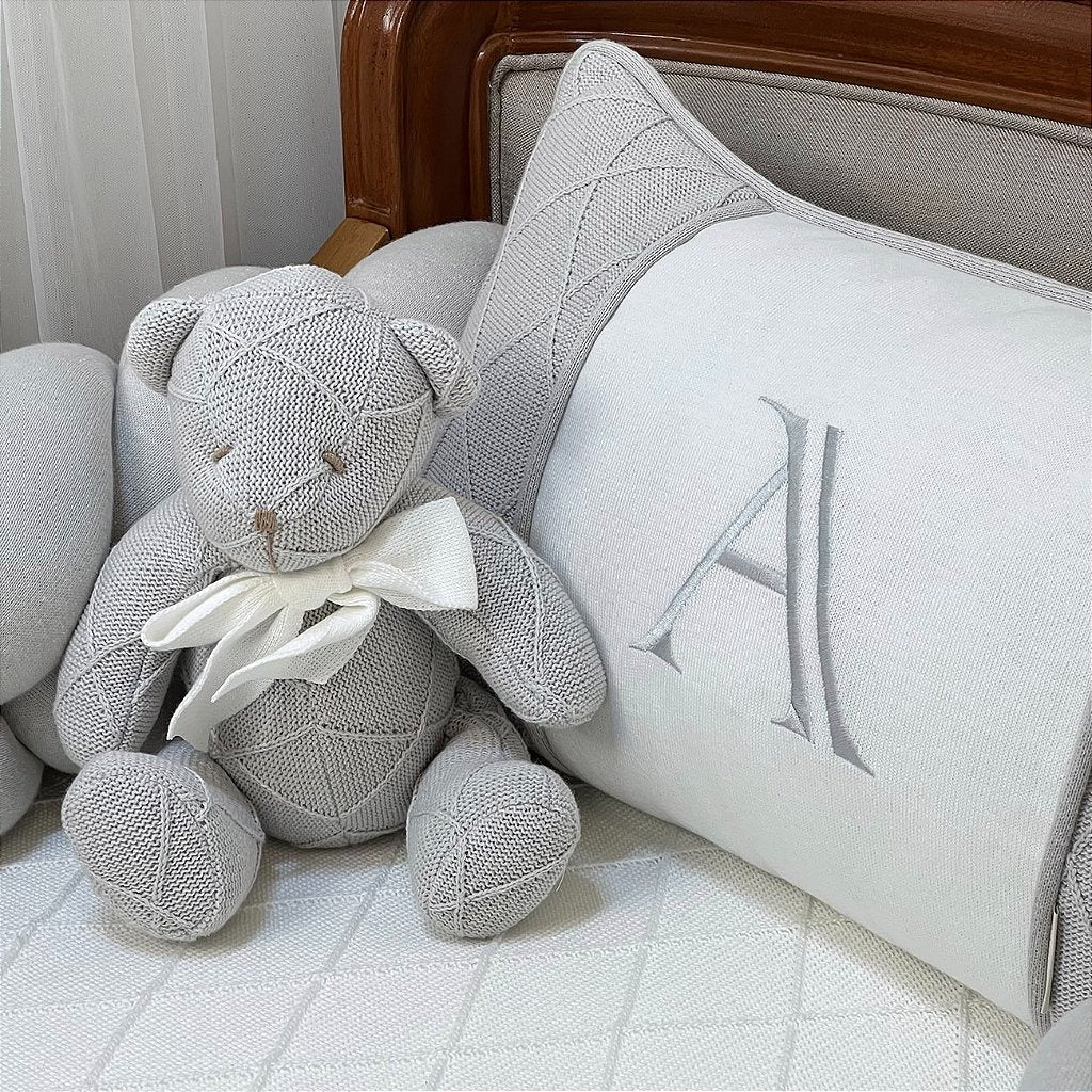 O Kit Berço Cinza Claro com Inicial é confeccionado no tricô, possui bordados na cabeceira e com inicial personalizado dando um toque de fofura, o charme fica por conta do mix de tramas do nosso tricô. Leve conforto e sofisticação para o quartinho do seu bebê! Nossos kits de berço são exclusivos e de fabricação própria pensados e desenvolvidos com muito amor e carinho para mamães e papais exigentes, sem falar na qualidade!