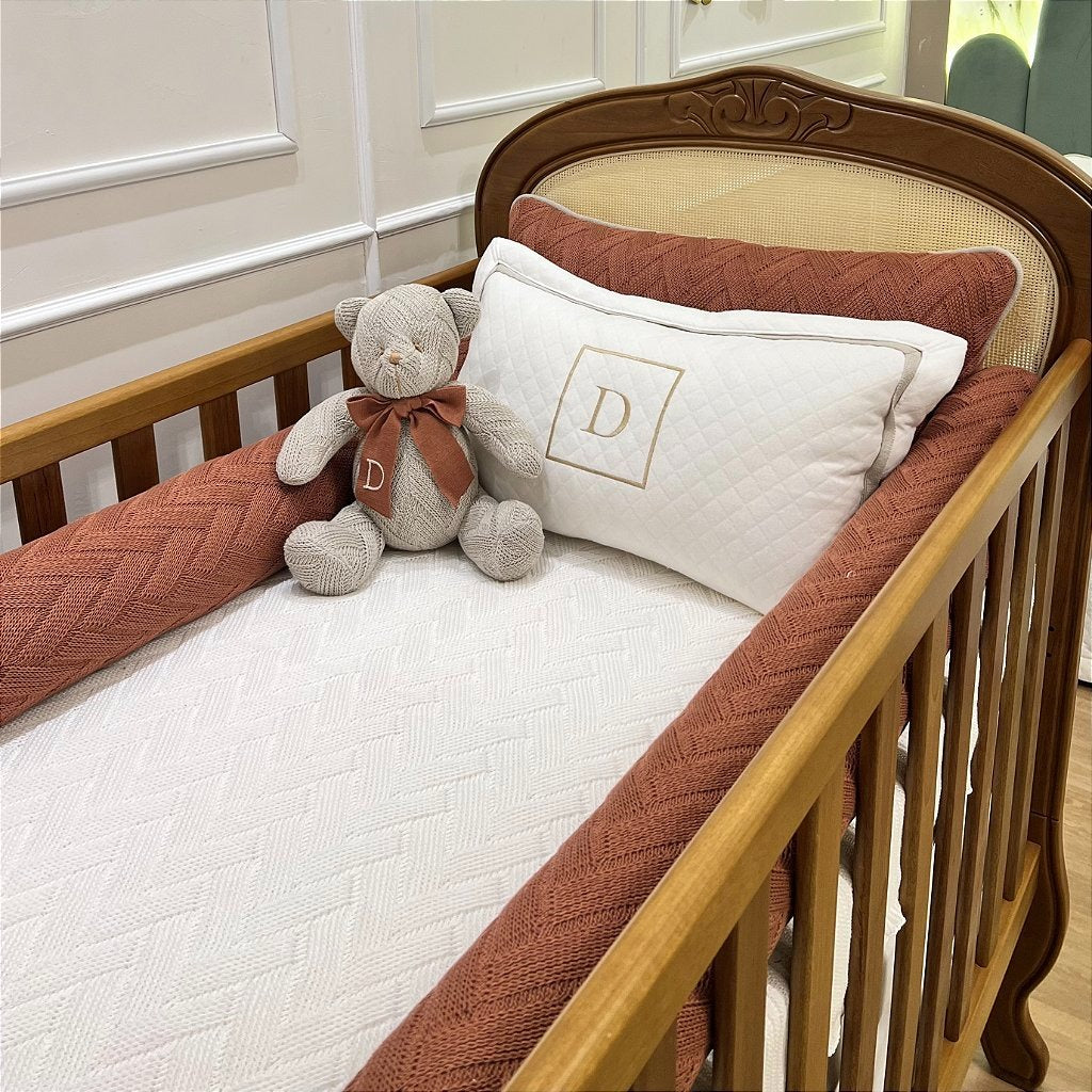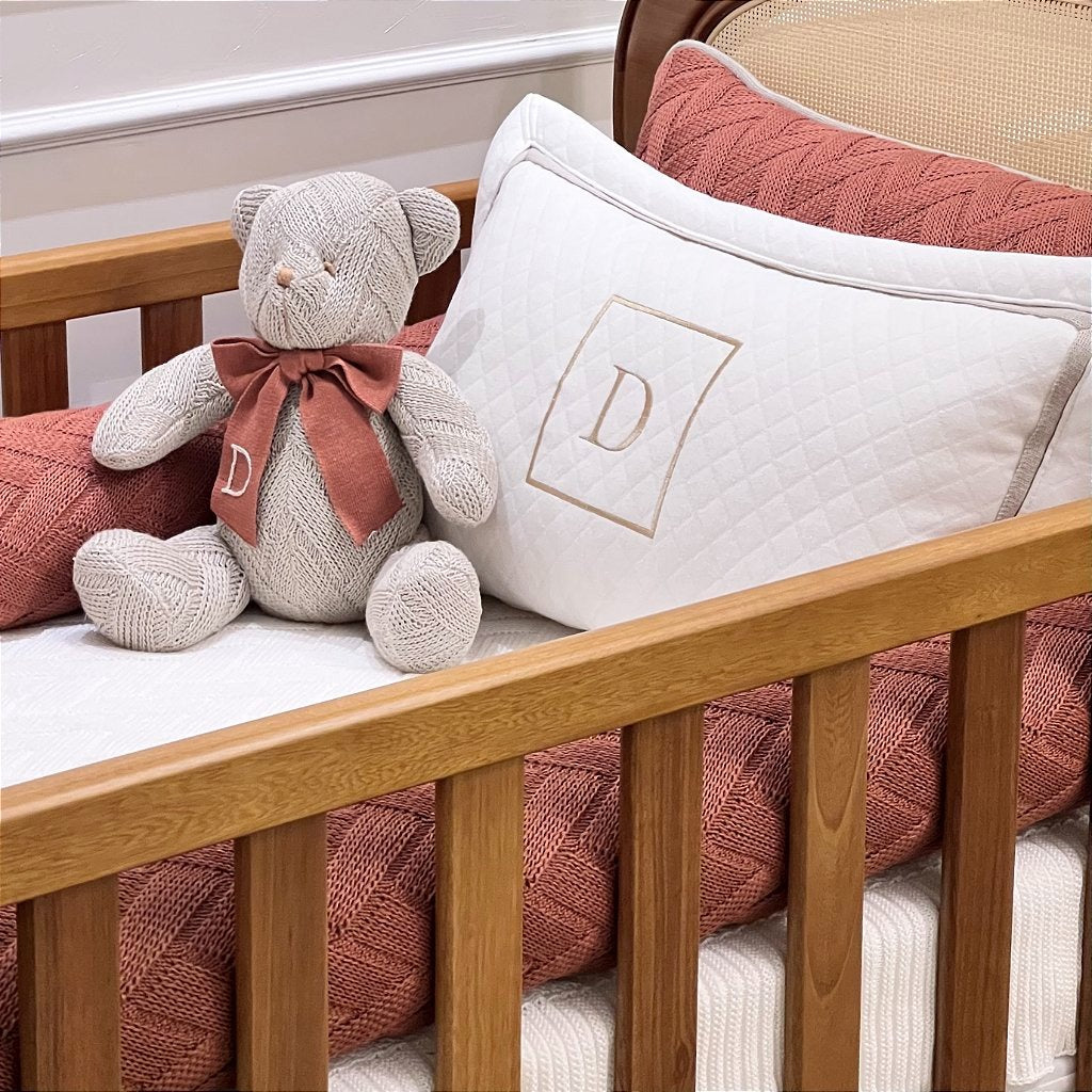 O Kit Berço Domenico com Inicial é confeccionado no tricô, possui bordados na cabeceira e com inicial personalizado dando um toque de fofura, o charme fica por conta do mix de tramas do nosso tricô. Leve conforto e sofisticação para o quartinho do seu bebê! Nossos kits de berço são exclusivos e de fabricação própria pensados e desenvolvidos com muito amor e carinho para mamães e papais exigentes, sem falar na qualidade!
