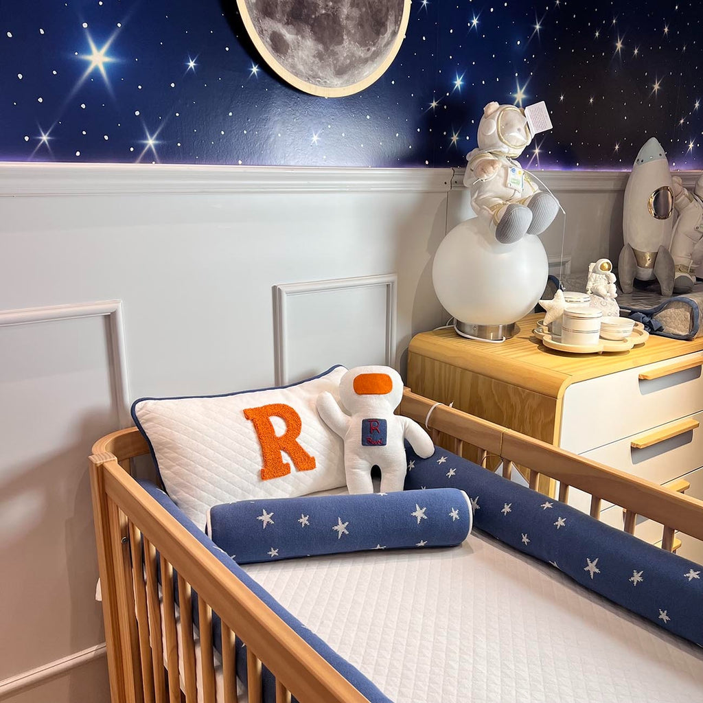 Encante-se com o Kit Protetor de Berço Quarto Astronauta e proporcione ao seu bebê um cantinho seguro, acolhedor e cheio de inspiração!