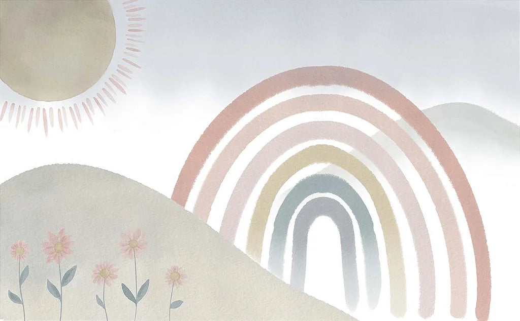 Transforme o quarto do seu bebê em um conto de fadas com nosso exclusivo Papel de Parede Infantil Arcoíris, com desenho de aquarela.