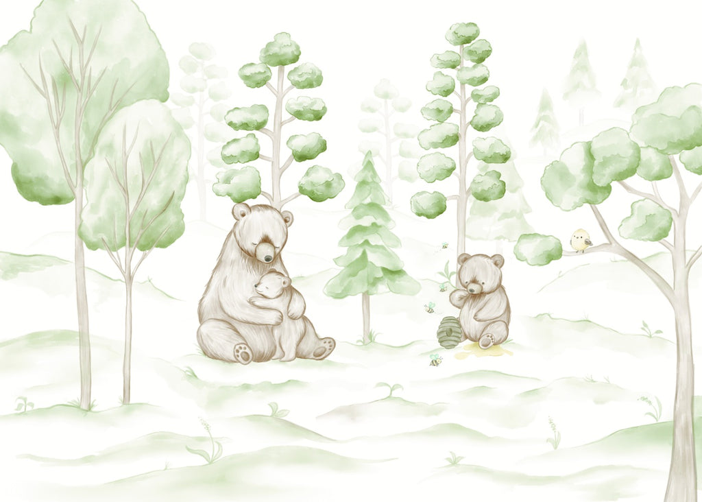 Papel de Parede infantil Bosque do Romeo 2. Papel de base nonwoven resistente a arranhões, atóxico e tintura a base de água com acabamento fosco.
