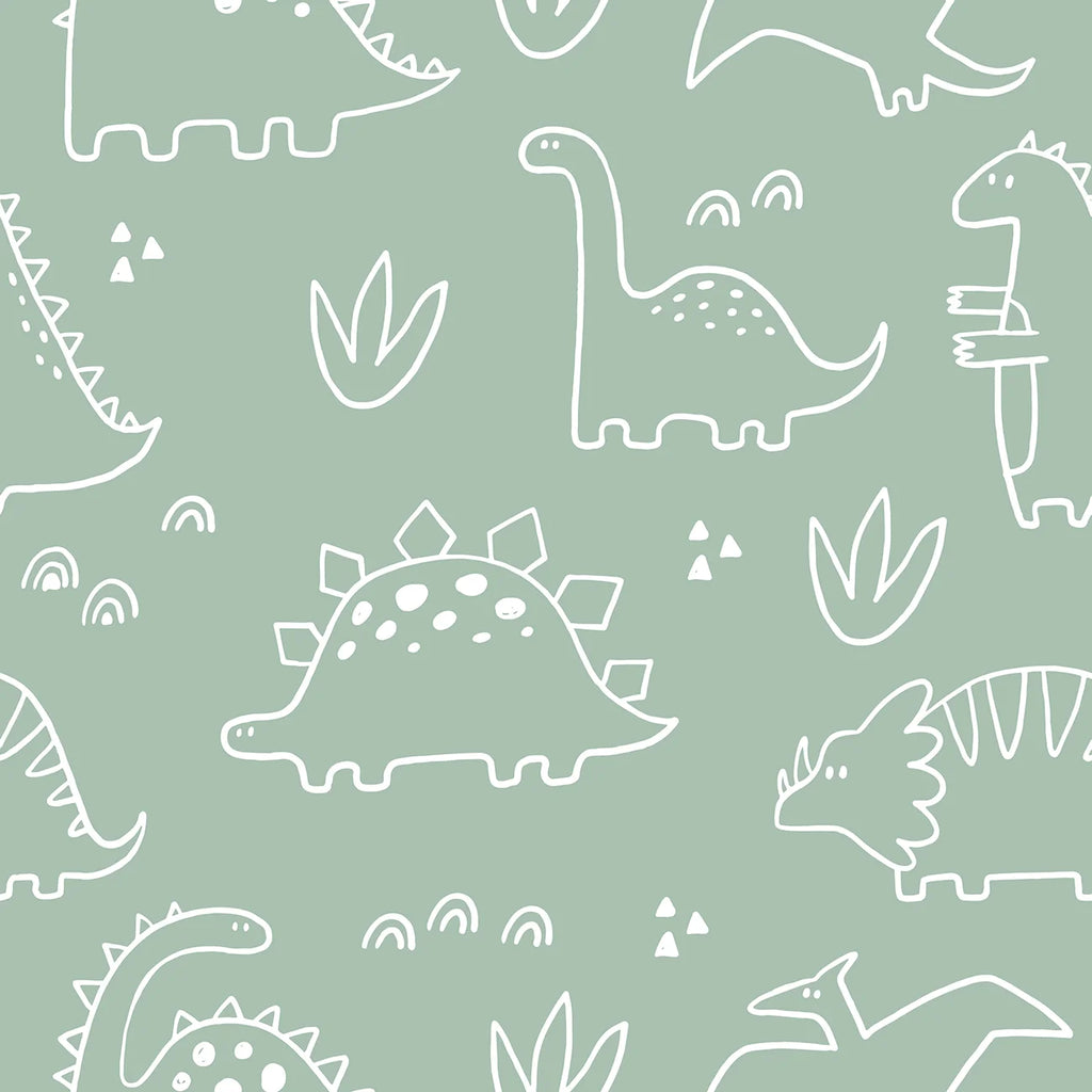 Transforme o quarto do seu bebê em um conto de fadas com nosso exclusivo Papel de Parede Infantil Estampa Dinossauros Mono Verde, com desenho de aquarela.