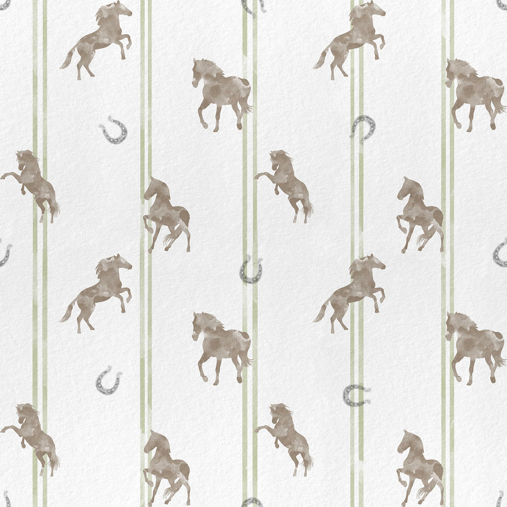 Transforme o quarto do seu bebê em um conto de fadas com nosso exclusivo Papel de Parede Infantil Listras Cavalos, com desenho de aquarela.