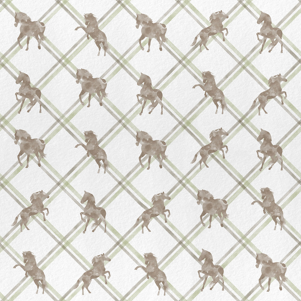 Transforme o quarto do seu bebê em um conto de fadas com nosso exclusivo Papel de Parede Infantil Losango Cavalos, com desenho de aquarela.