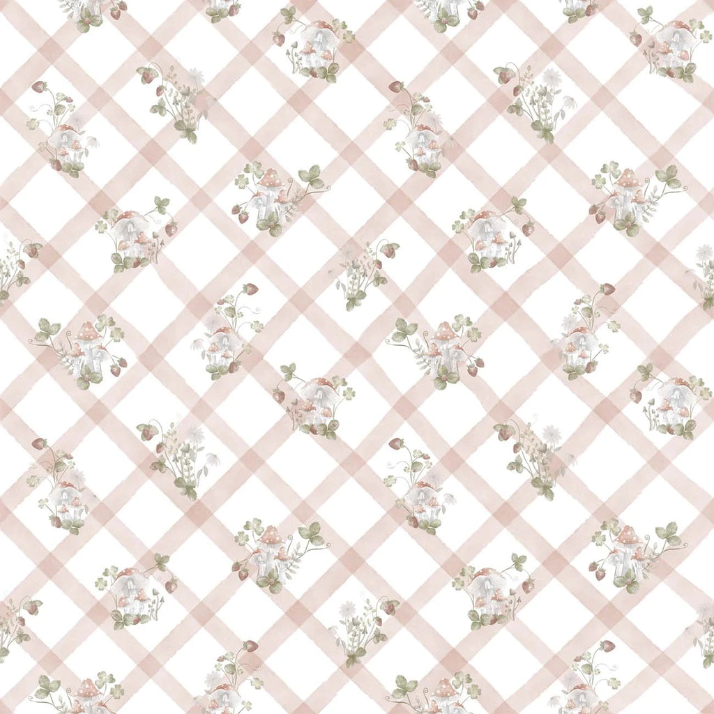 Transforme o quarto do seu bebê em um conto de fadas com nosso exclusivo Papel de Parede Infantil Losango Floral Morango, com desenho de aquarela.