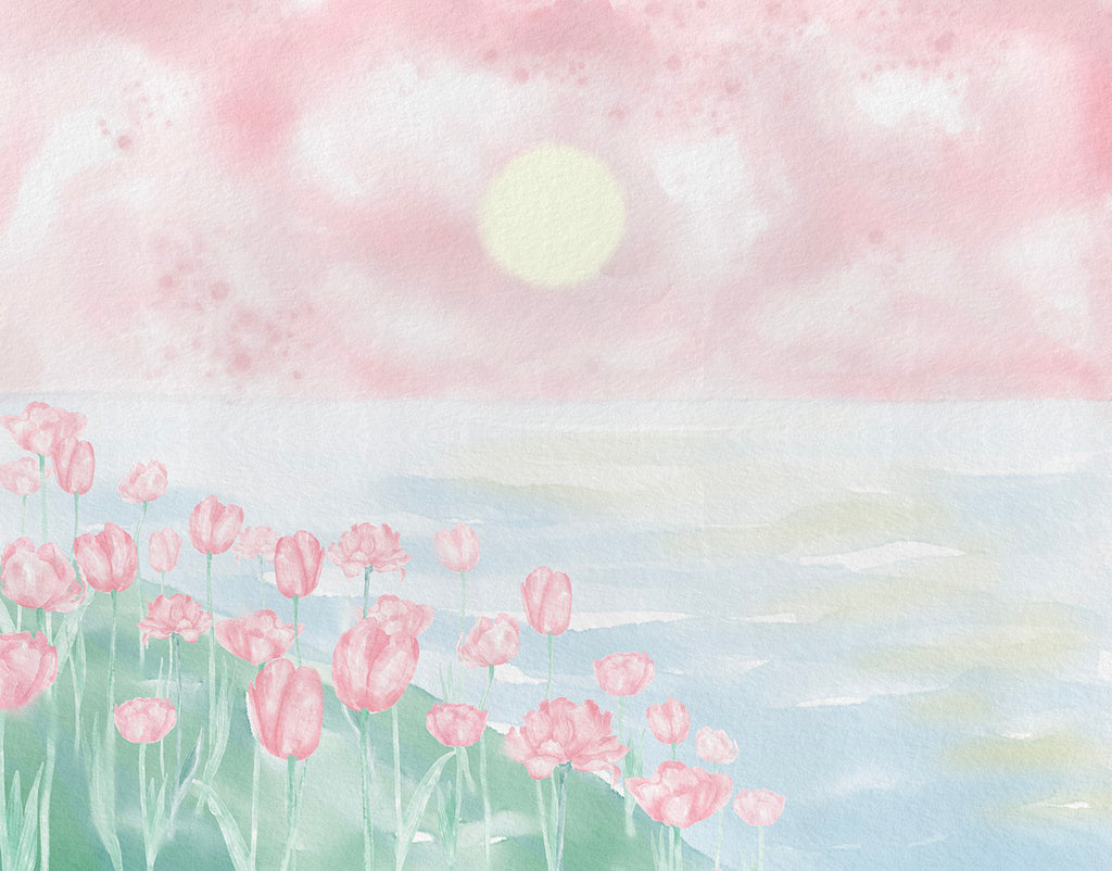 Transforme o quarto do seu bebê em um conto de fadas com nosso exclusivo Papel de Parede Infantil Por do Sol Primavera, com desenho de aquarela.