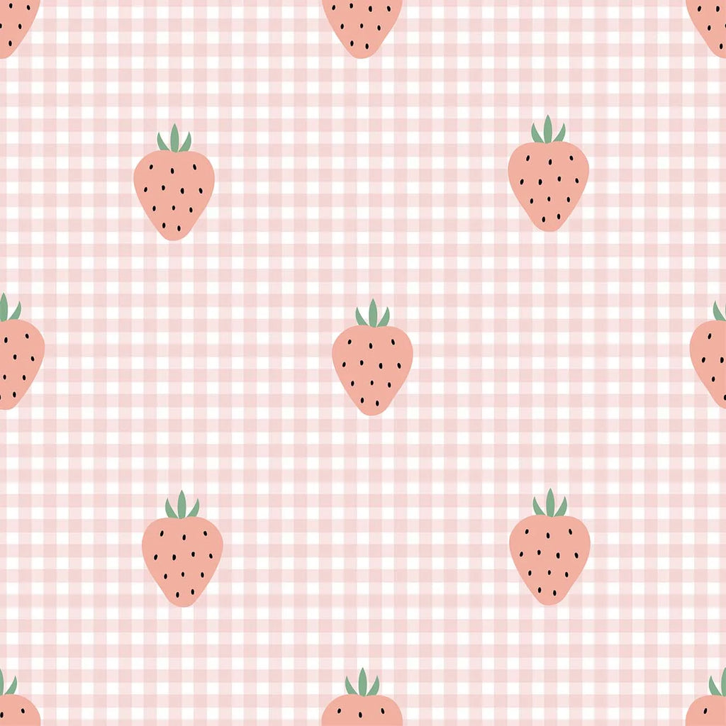 Transforme o quarto do seu bebê em um conto de fadas com nosso exclusivo Papel de Parede Infantil Xadrez Morango, com desenho de aquarela.