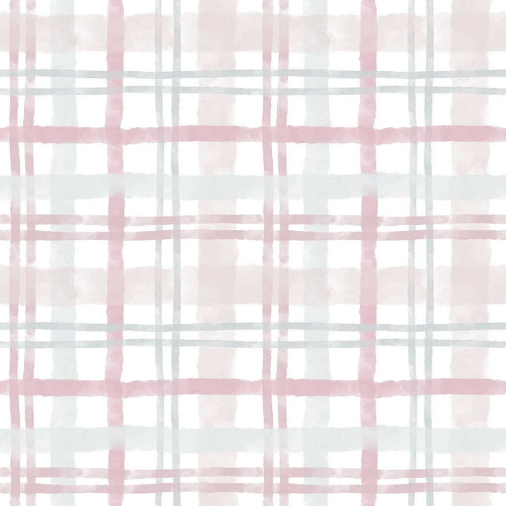 Transforme o quarto do seu bebê em um conto de fadas com nosso exclusivo Papel de Parede Infantil Xadrez, com desenho de aquarela em tons de rosa, rosê, cinza e azul.
