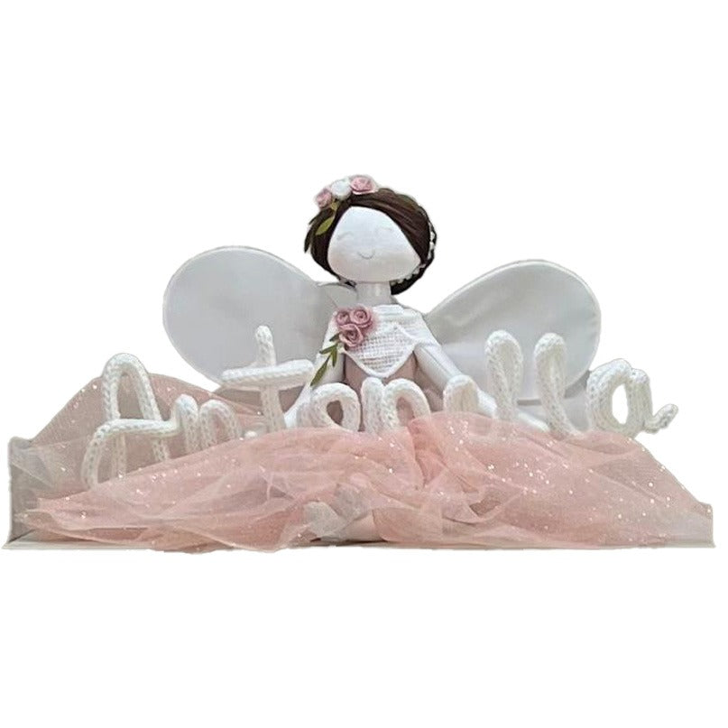 As asas em tecido branco adicionam leveza ao design, enquanto o nome do bebê, em tricô personalizado, fica em destaque, tornando a peça única e especial. Ideal para decorar a porta da maternidade e, depois, para enfeitar o quarto da pequena Antonella, este porta maternidade é um presente inesquecível e cheio de carinho.