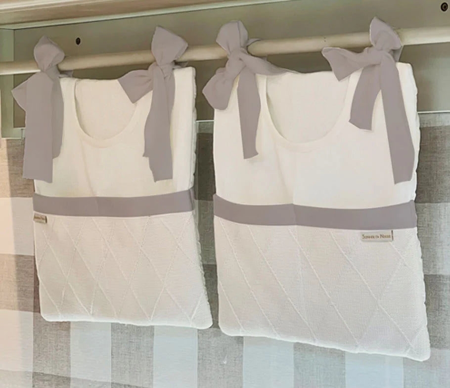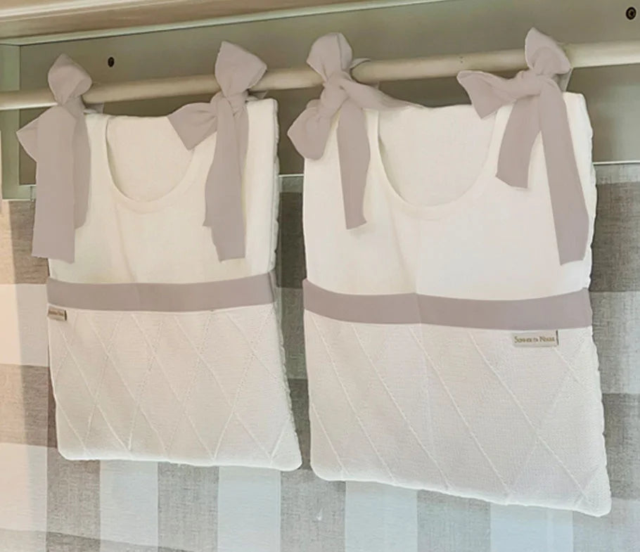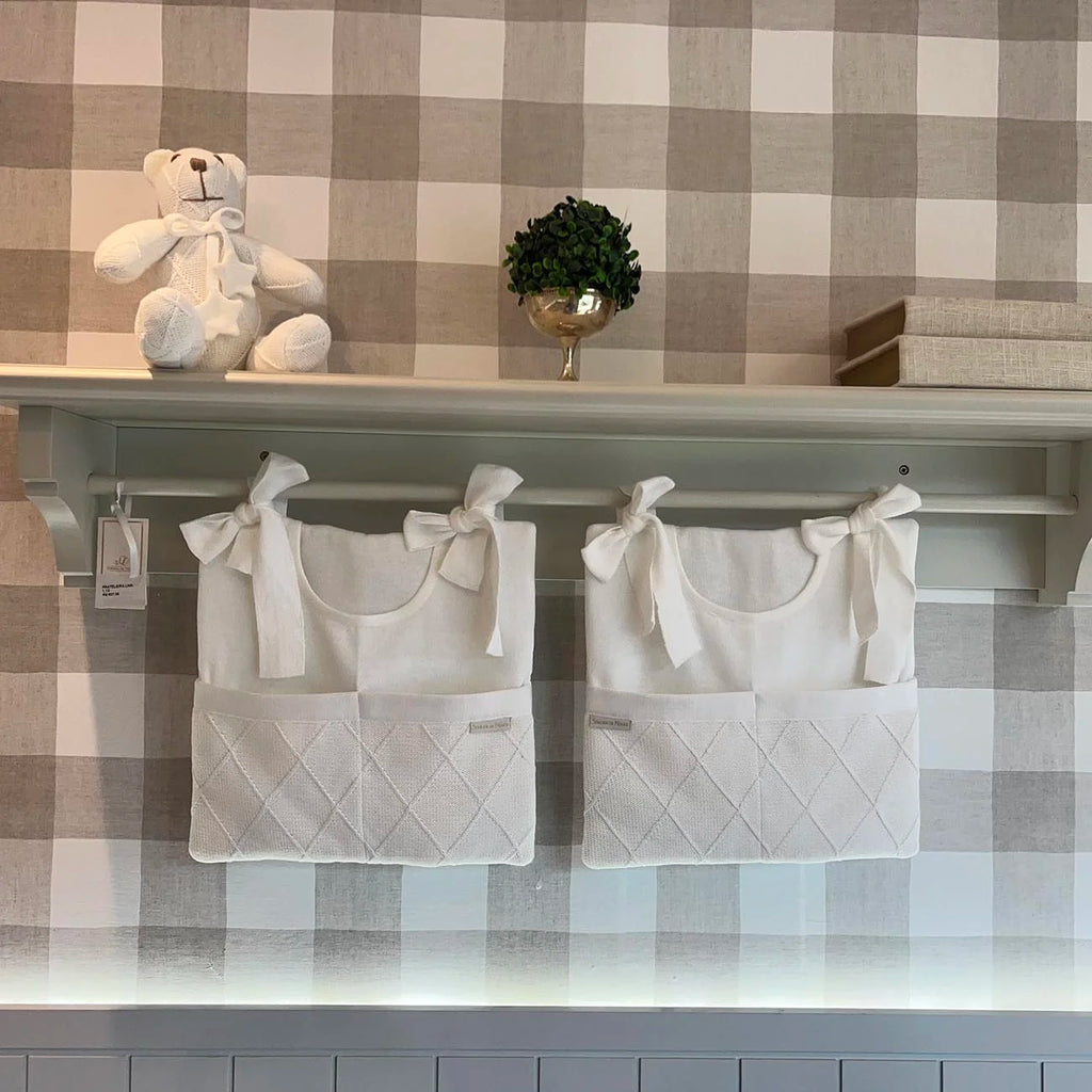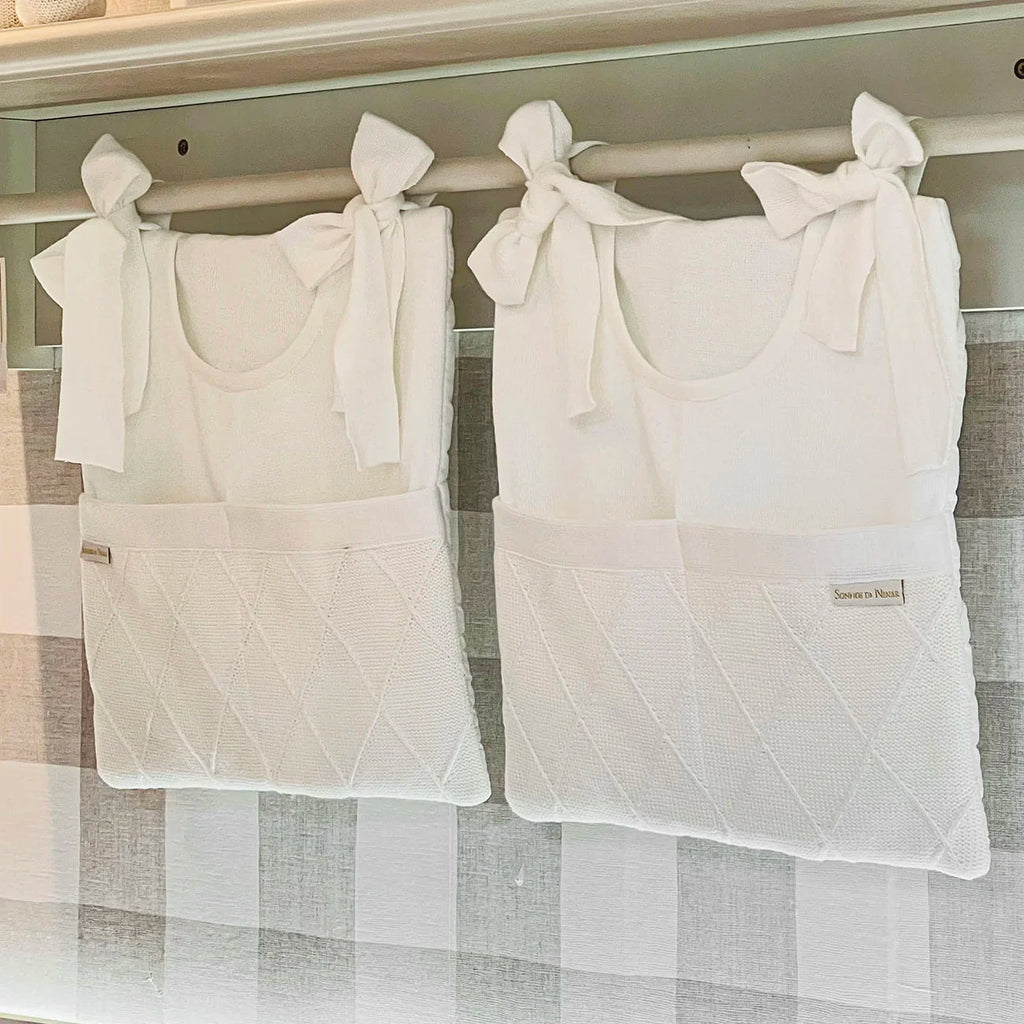 O Porta treco ou porta fralda da Sonhos de Ninar é uma solução elegante e funcional para manter a organização com um toque de encanto no universo do seu bebê. Sejam fraldas, brinquedos ou acessórios, cada item encontra seu lugar neste espaço prático e cheio de estilo. Com compartimentos inteligentes e um design elegante, ele se torna parte da decoração do quarto, adicionando sofisticação e funcionalidade. (Veja o mostruário das cores e tramas do tricô disponíveis na descrição completa do produto)