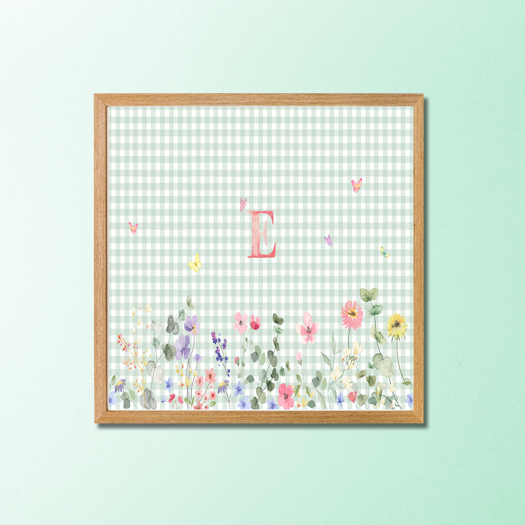Quadro Decorativo com desenhos, Xadrez Verde e Flores com Inicial Personalizada da Coleção Xadrez com Flores. Nossos quadros são cuidadosamente elaborados para dar um toque de magia aos espaços dos pequenos. Com cores suaves e designs encantadores, nossos quadros são a escolha perfeita para adicionar um toque de magia à decoração do quarto do seu bebê. Cada quadro é uma obra de arte, uma produção exclusiva da Sonhos de Ninar feita com amor e com materiais de alta qualidade. Eles são ideais para criar um ambiente aconchegante e inspirador.