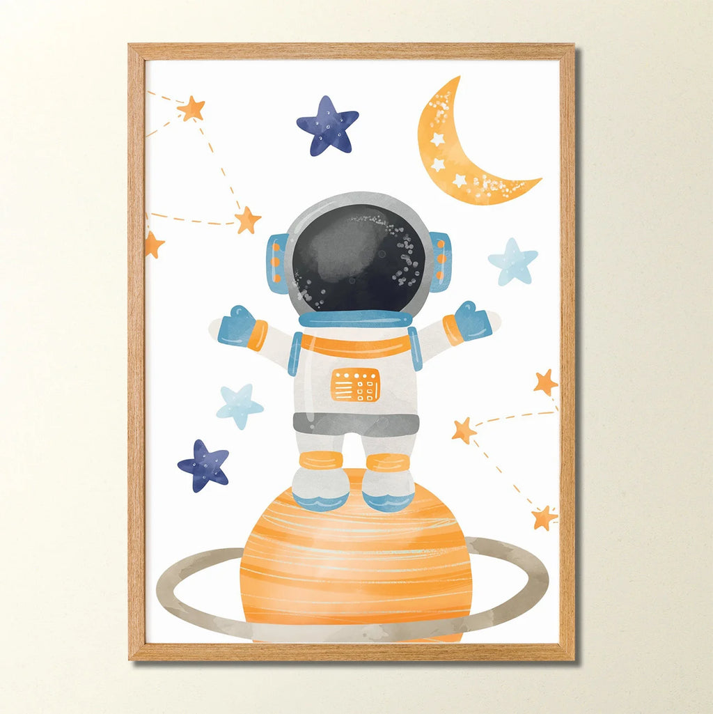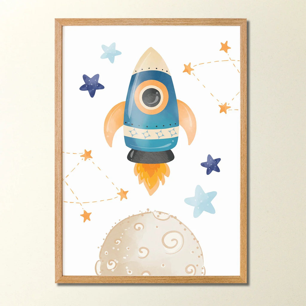 Quadros Decorativos com desenhos de foguete, planeta e estrelas no espaço da Coleção Astronauta. Nossos quadros são cuidadosamente elaborados para dar um toque de magia aos espaços dos pequenos. Com cores suaves e designs encantadores, nossos quadros são a escolha perfeita para adicionar um toque de magia à decoração do quarto do seu bebê. Cada quadro é uma obra de arte, uma produção exclusiva da Sonhos de Ninar feita com amor e com materiais de alta qualidade. Eles são ideais para criar um ambiente aconchegante e inspirador. Possibilidade de compra da unidade avulsa ou do Kit de 3 Quadros da Coleção.