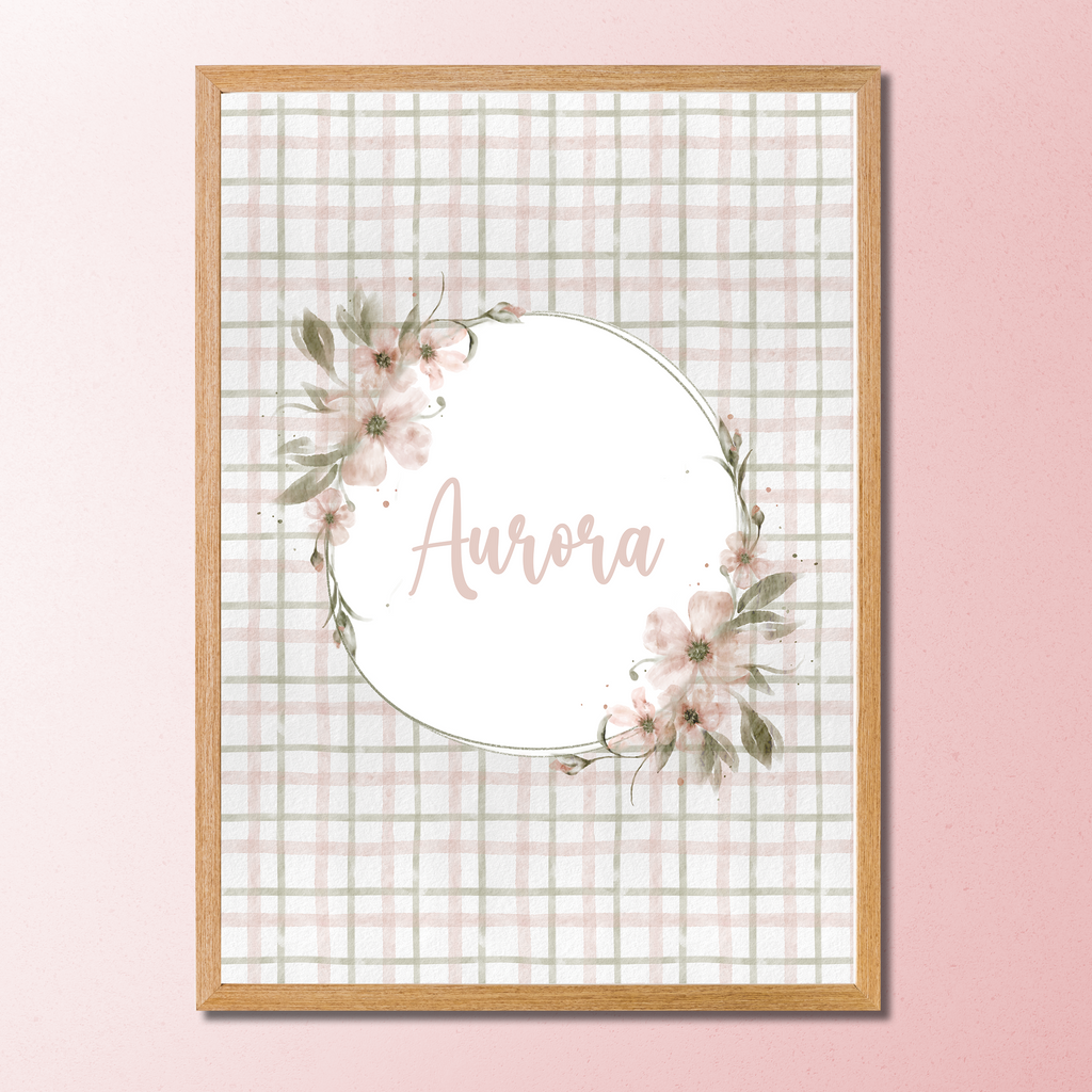Quadro Decorativo com desenho de Xadrez com Flores e Nome Personalizado da Coleção Aurora Linum. Nossos quadros são cuidadosamente elaborados para dar um toque de magia aos espaços dos pequenos. Com cores suaves e designs encantadores, nossos quadros são a escolha perfeita para adicionar um toque de magia à decoração do quarto do seu bebê. Cada quadro é uma obra de arte, uma produção exclusiva da Sonhos de Ninar feita com amor e com materiais de alta qualidade. Eles são ideais para criar um ambiente aconchegante e inspirador.
