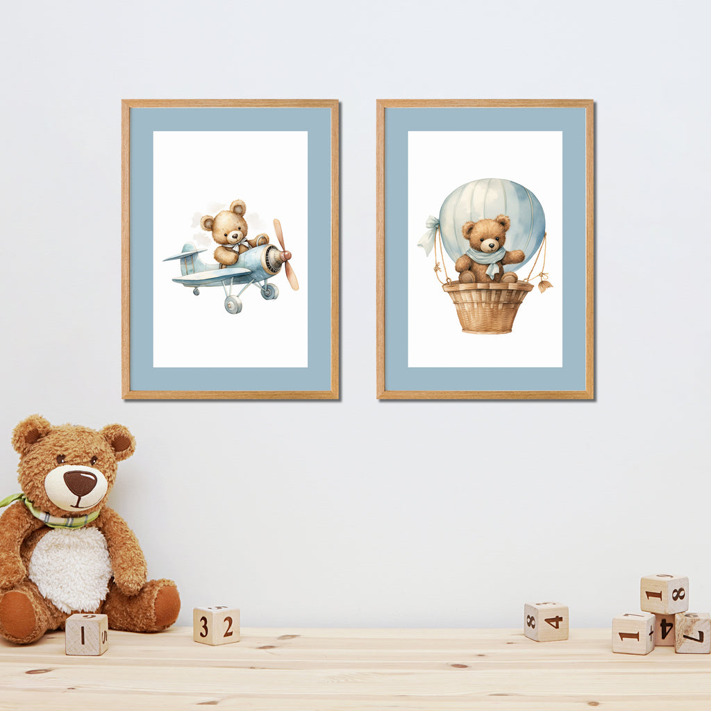Quadros Decorativos com desenho de urso com avião e balão da Coleção Teddy Bear Aviador. Nossos quadros são cuidadosamente elaborados para dar um toque de magia aos espaços dos pequenos. Com cores suaves e designs encantadores, nossos quadros são a escolha perfeita para adicionar um toque de magia à decoração do quarto do seu bebê. Cada quadro é uma obra de arte, uma produção exclusiva da Sonhos de Ninar feita com amor e com materiais de alta qualidade. Eles são ideais para criar um ambiente aconchegante e inspirador. Possibilidade de compra da unidade avulsa ou do Kit de 2 Quadros da Coleção.
