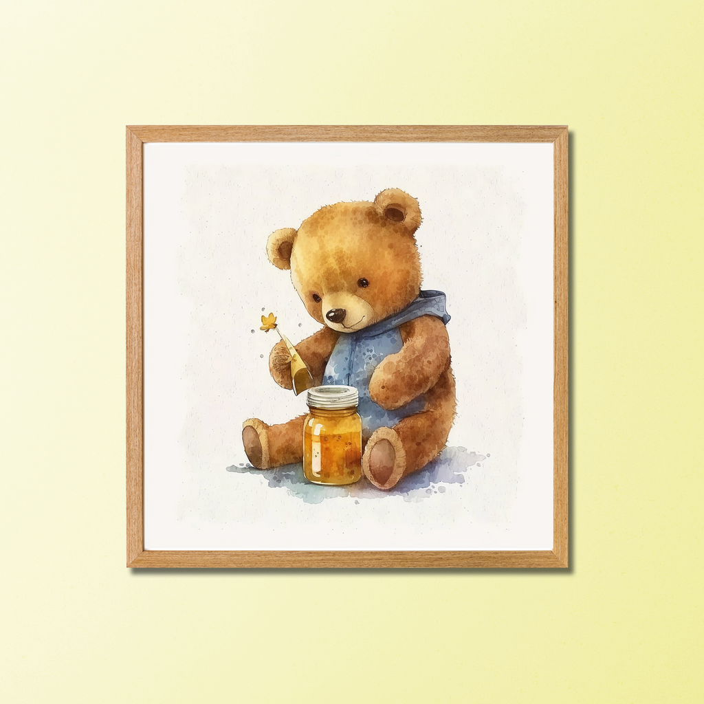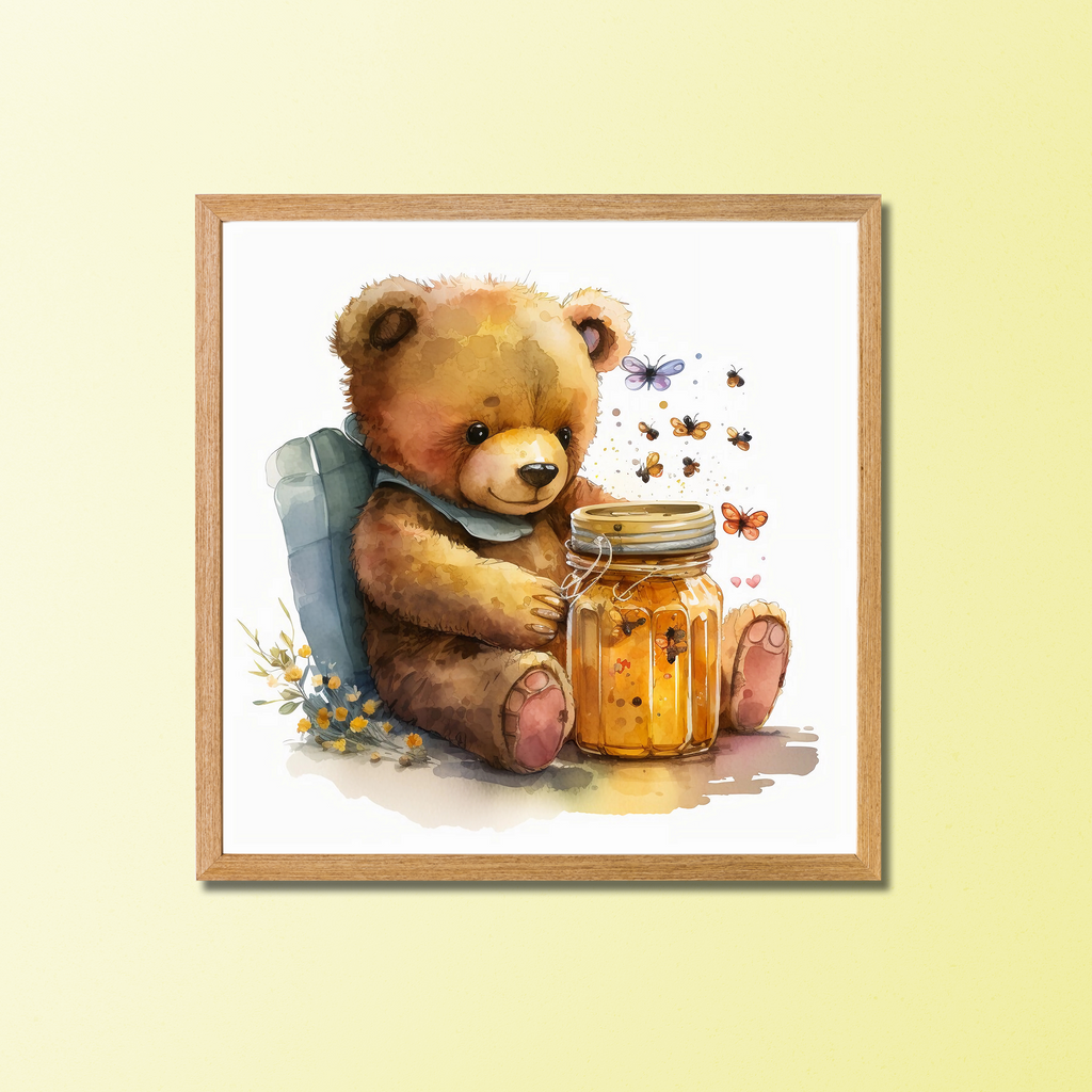 Quadros Decorativos com desenho de Ursinhos com Potinhos de Mel da Coleção Ursinhos Mel. Nossos quadros são cuidadosamente elaborados para dar um toque de magia aos espaços dos pequenos. Com cores suaves e designs encantadores, nossos quadros são a escolha perfeita para adicionar um toque de magia à decoração do quarto do seu bebê. Cada quadro é uma obra de arte, uma produção exclusiva da Sonhos de Ninar feita com amor e com materiais de alta qualidade. Eles são ideais para criar um ambiente aconchegante e inspirador. Possibilidade de compra da unidade avulsa ou do Kit de 2 Quadros da Coleção.