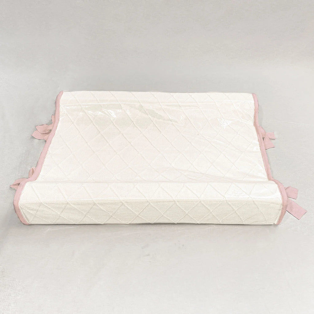 Trocador de Bebê Americano elaborado em tecido Tricot na trama Losango, com enchimento macio. Possui capa plástica transparente com bordinhas e laço de tricot disponivel em variadas cores. (Veja o mostruário das cores disponiveis na descrição completa do produto)